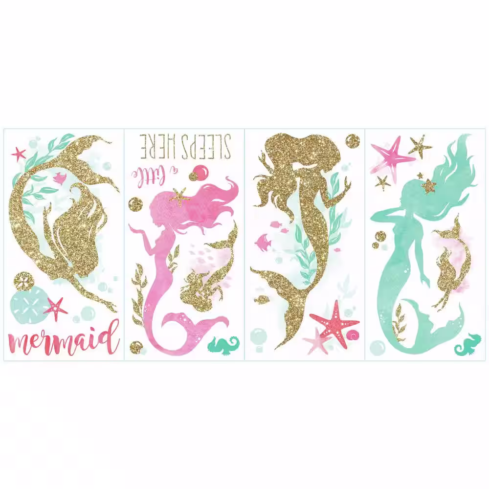 RoomMates 5 in. x 11.5 in. Mermaid 21-Piece Peel and Stick Wall Decals with Glitter