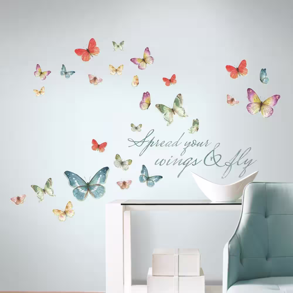 RoomMates 5 in. x 11.5 in. Lisa Audit Butterfly Quote 28-Piece Peel and Stick Wall Decals