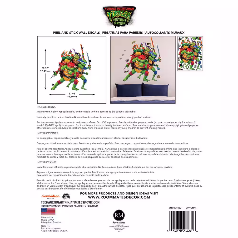 RoomMates Teenage Mutant Ninja Turtles Green Mutant Mayhem Group Giant Vinyl Peel and Stick Wall Decals