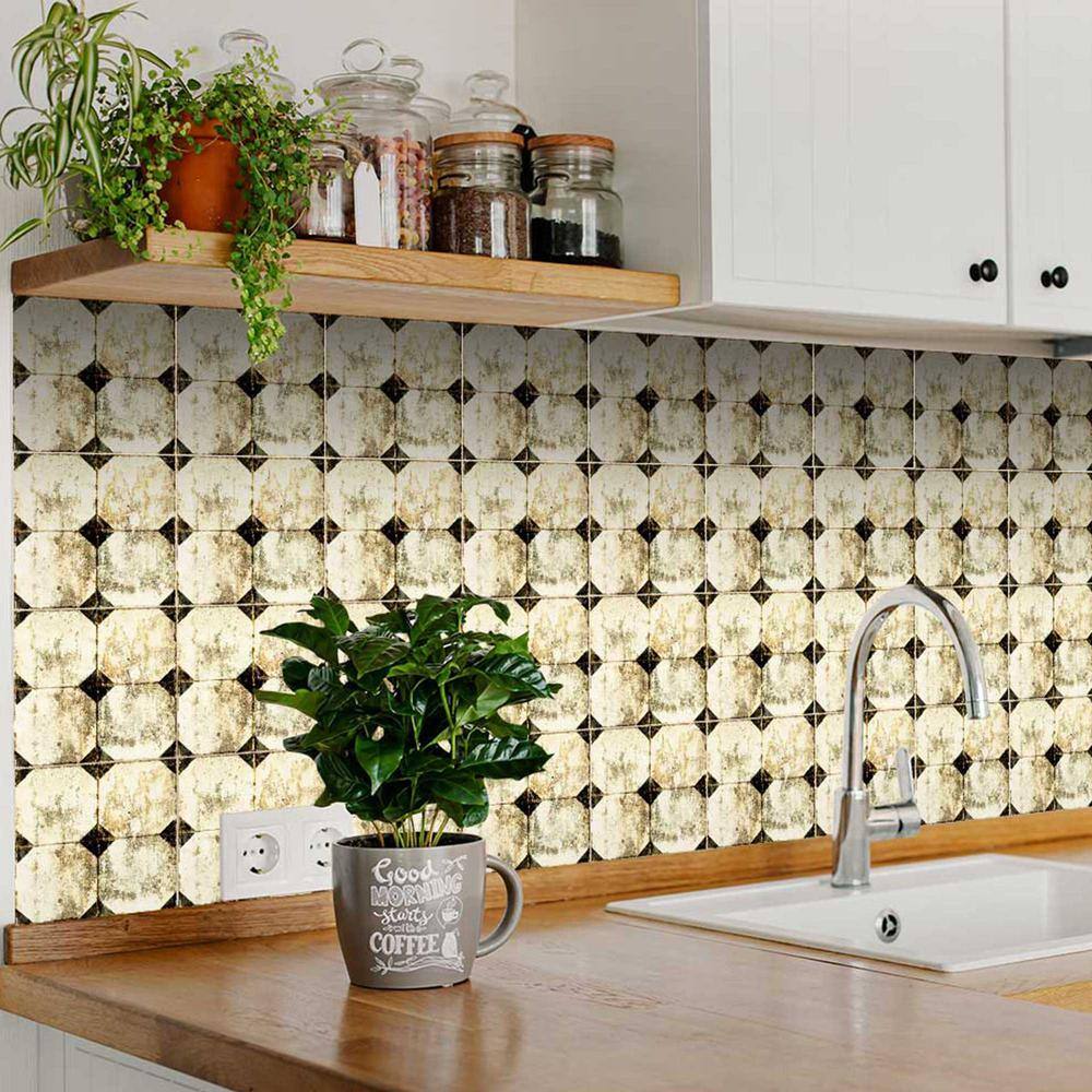 HomeRoots Black/White 6 in. x 6 in. Vinyl Peel and Stick Removable Tile Stickers (6 sq. ft./Pack)