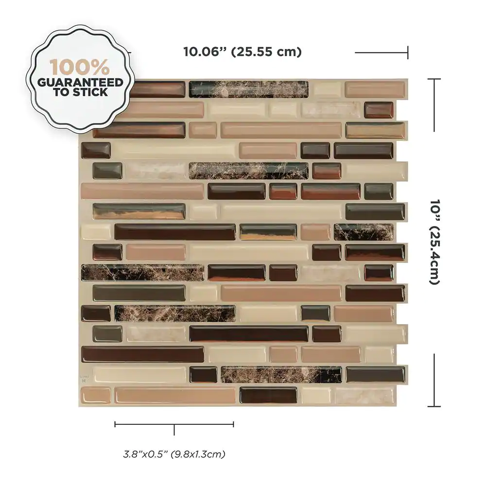 smart tiles Bellagio Keystone Brown 10.06 in. x 10 in. Vinyl Peel and Stick Tile (2.35 sq. ft. / 4-pack)