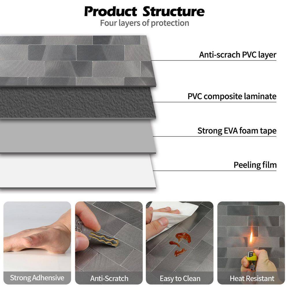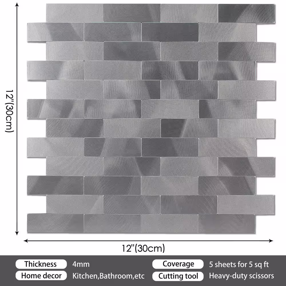 None Dark Gray 12 in. x 12 in. x 0.16 in. Metal Peel and Stick Tile (5 sq. ft./5-Sheets)