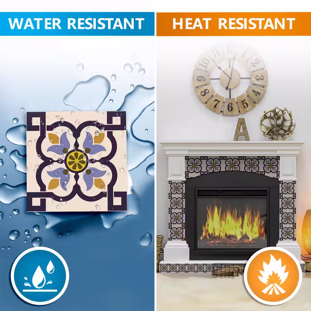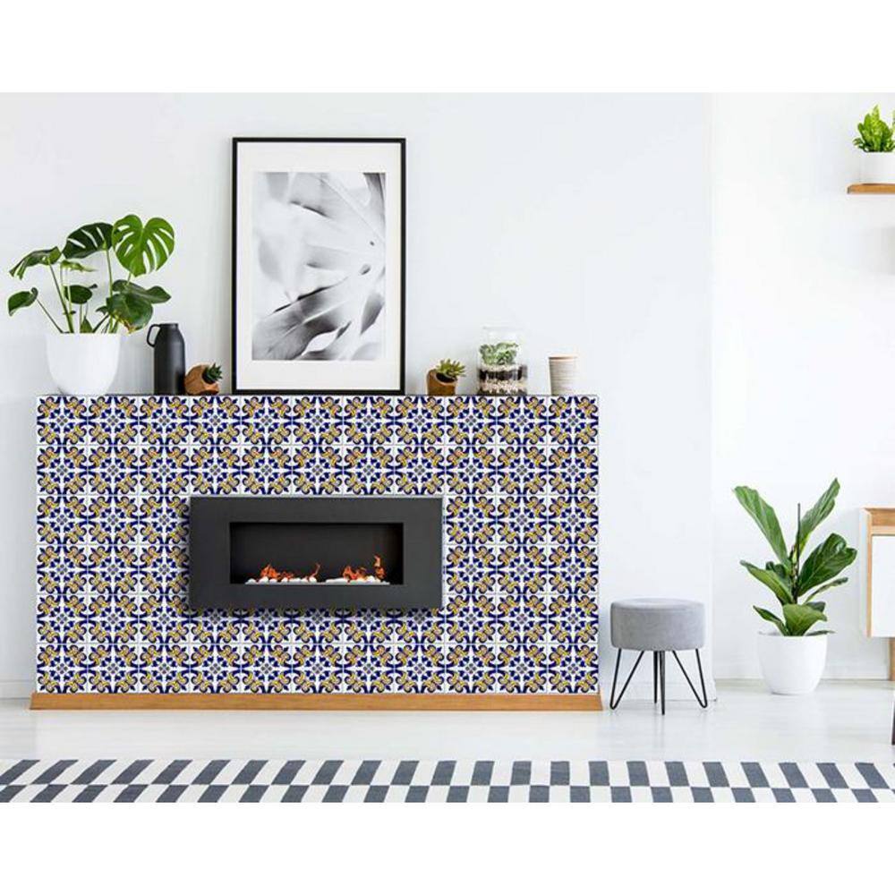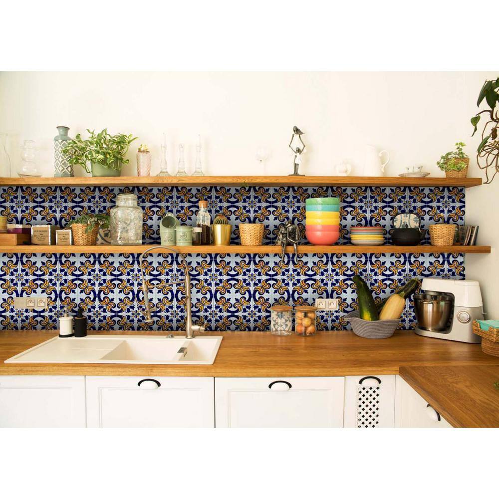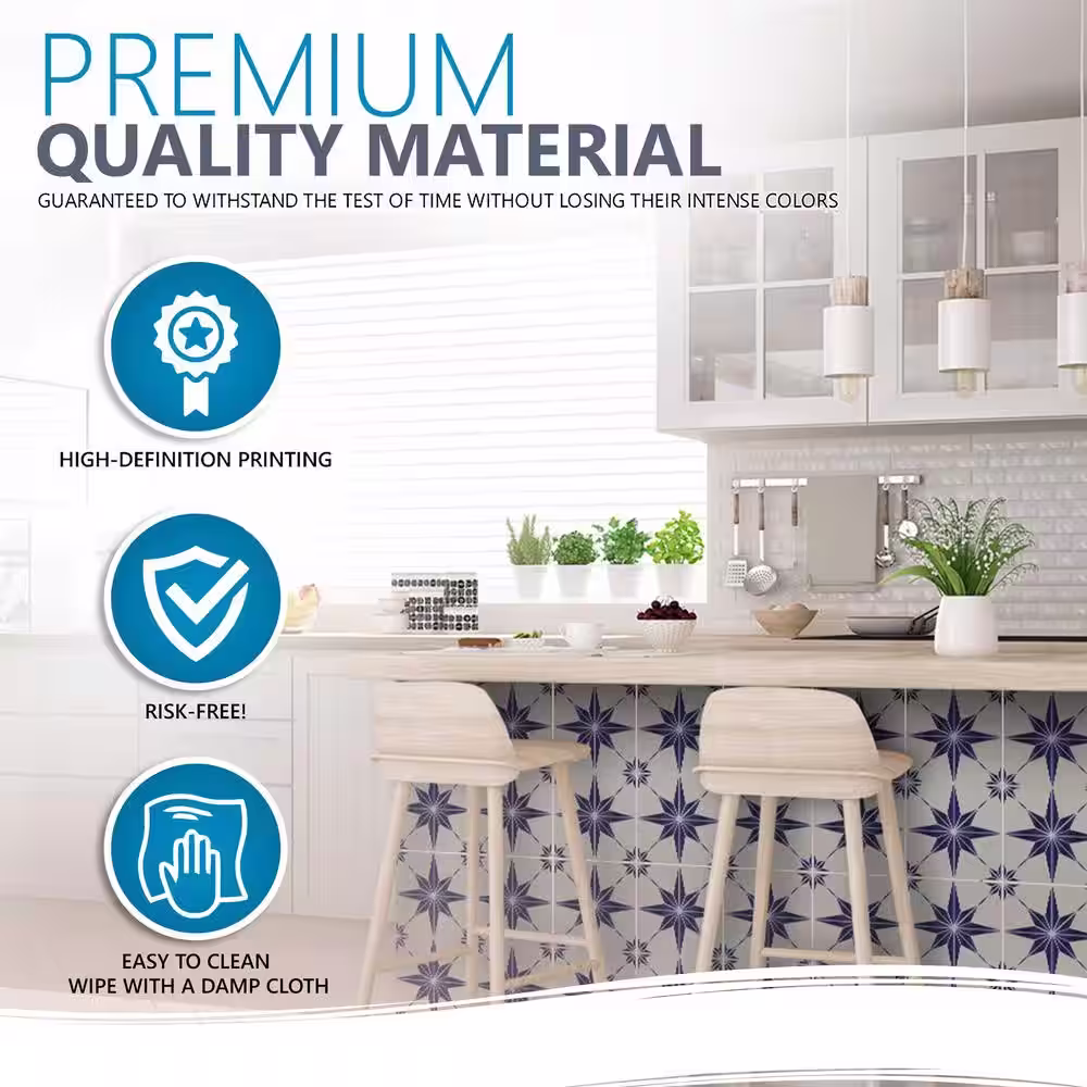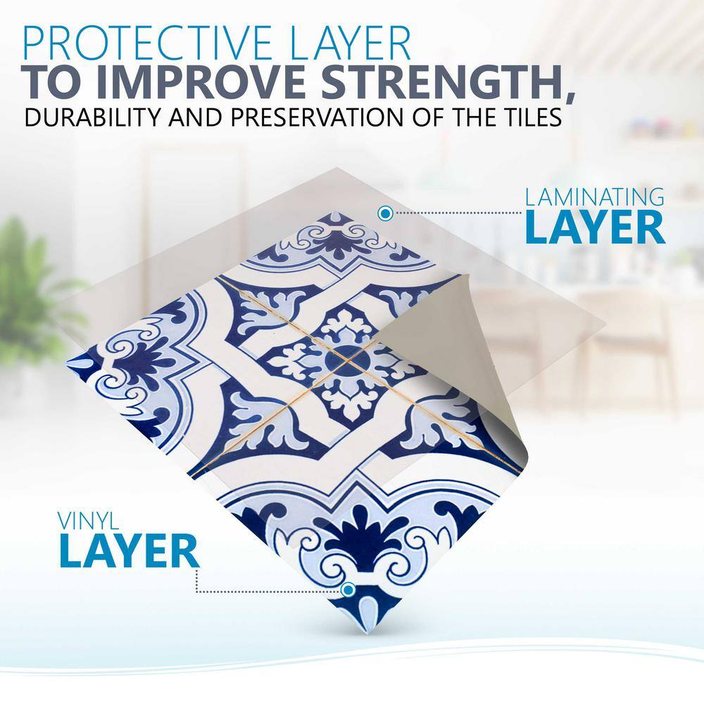 HomeRoots Blue Mikos 4 in. x 4 in. Vinyl Peel and Stick Removable Tile Stickers (2.64 sq.ft./Pack)