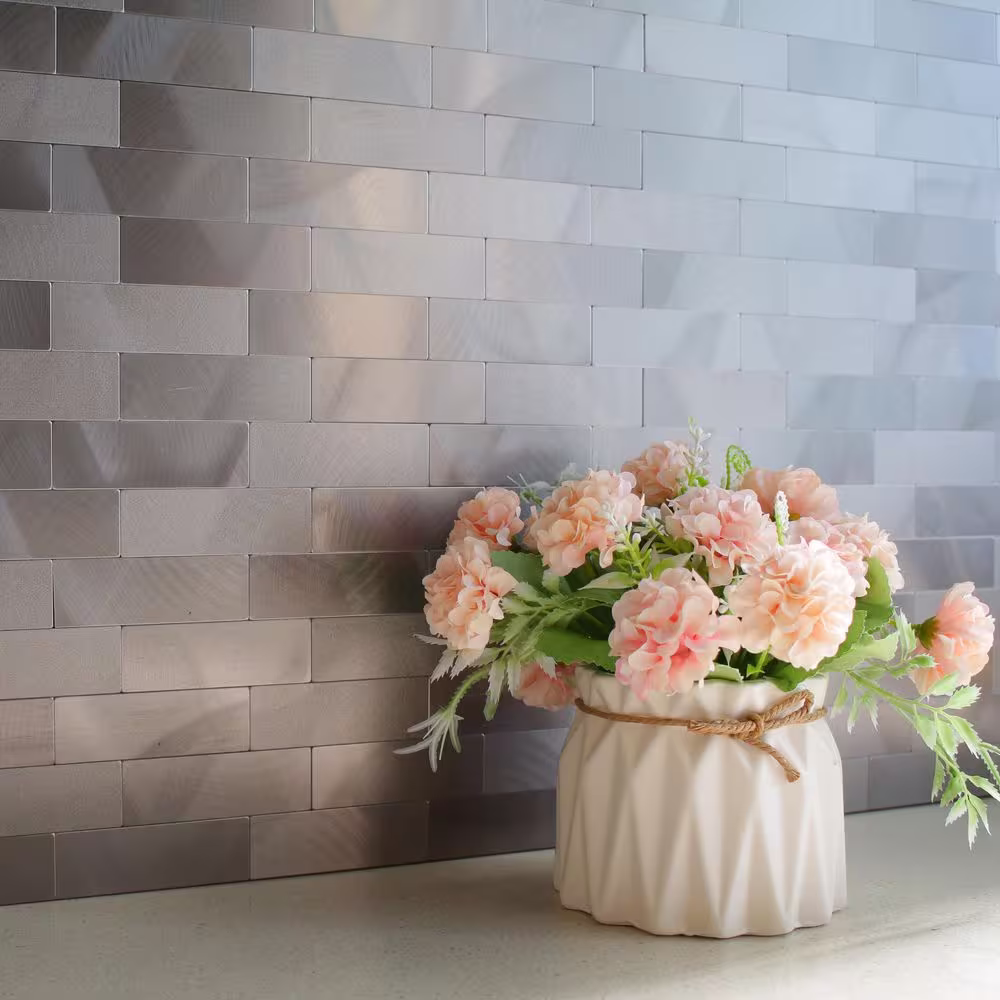 Art3d Square Mosaic Tile Silver 12 in. x 12 in. PVC Peel and Stick Tile Backsplash (5-sq.ft./Case)
