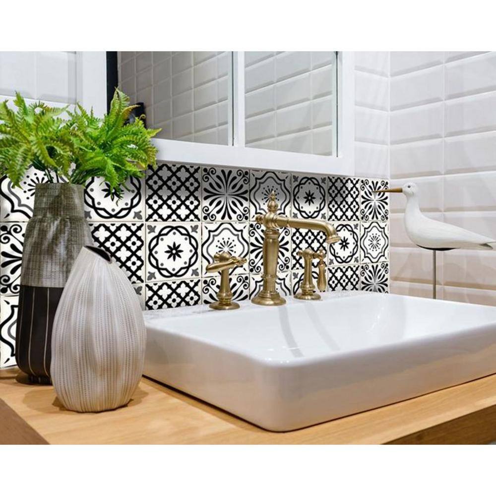 HomeRoots Black/White 8 in. x 8 in. Vinyl Peel and Stick Removable Tile Stickers (10.56 sq. ft./Pack)
