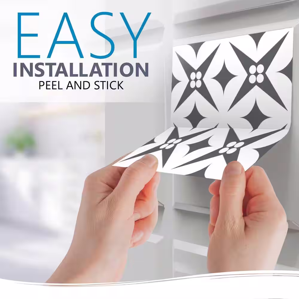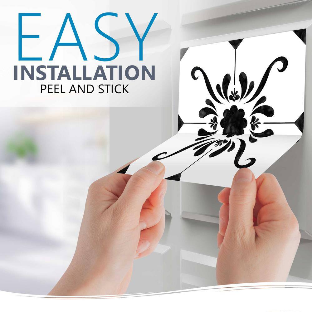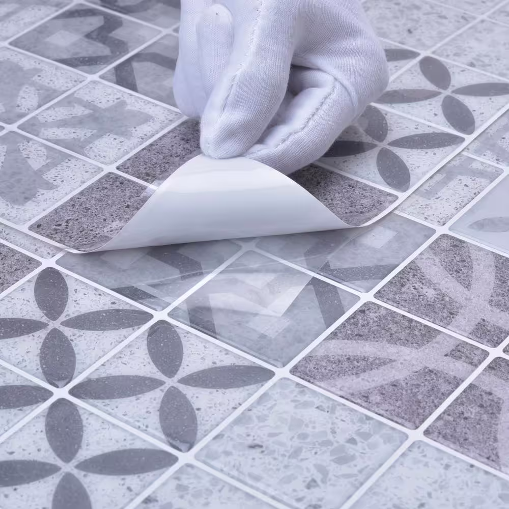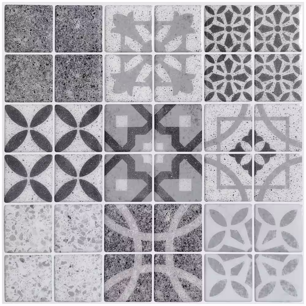 Art3dwallpanels Gray Flower Mexican 11.8 in. x 11.8 in. Vinyl Peel and Stick Backsplash Tile (9.7 sq. ft./Pack)