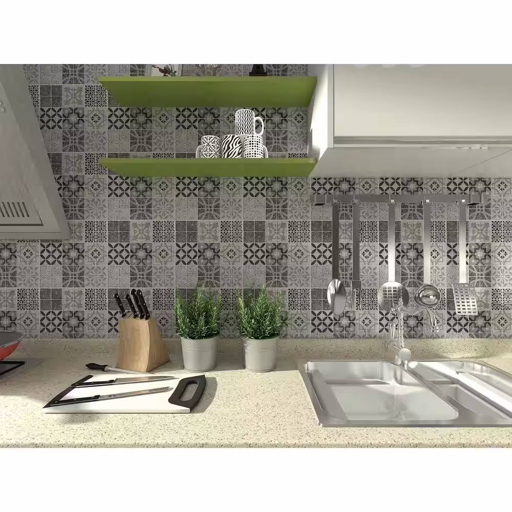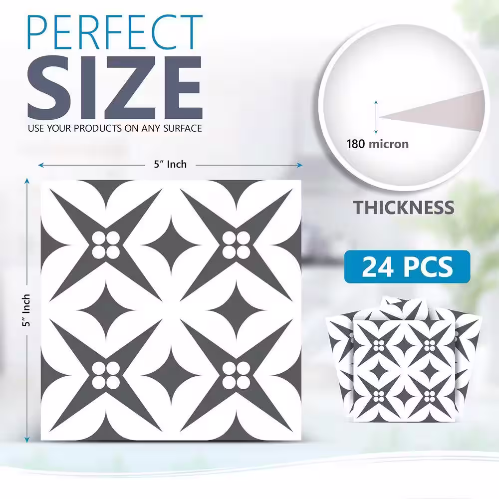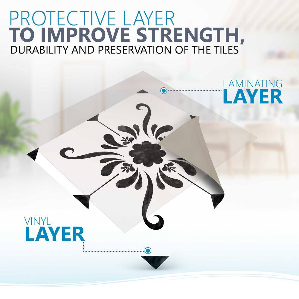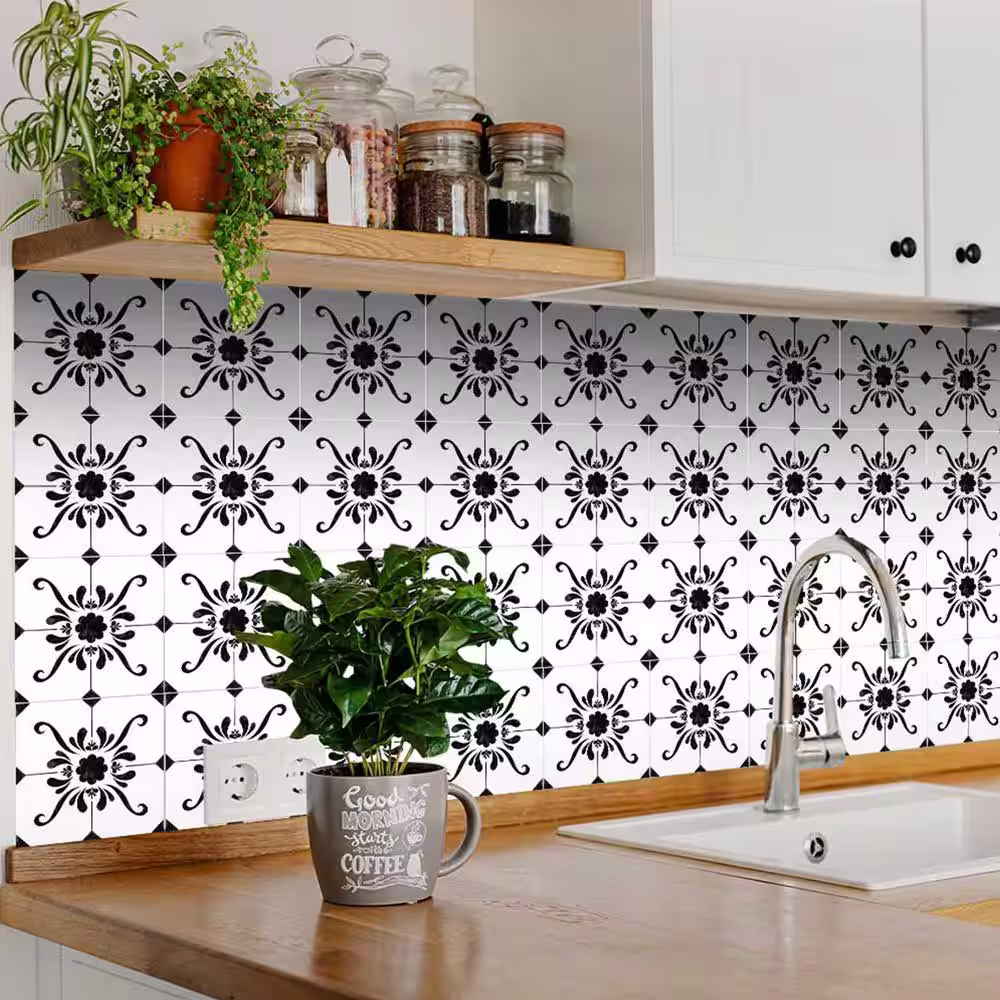 Art3dwallpanels Gray Flower Mexican 11.8 in. x 11.8 in. Vinyl Peel and Stick Backsplash Tile (9.7 sq. ft./Pack)