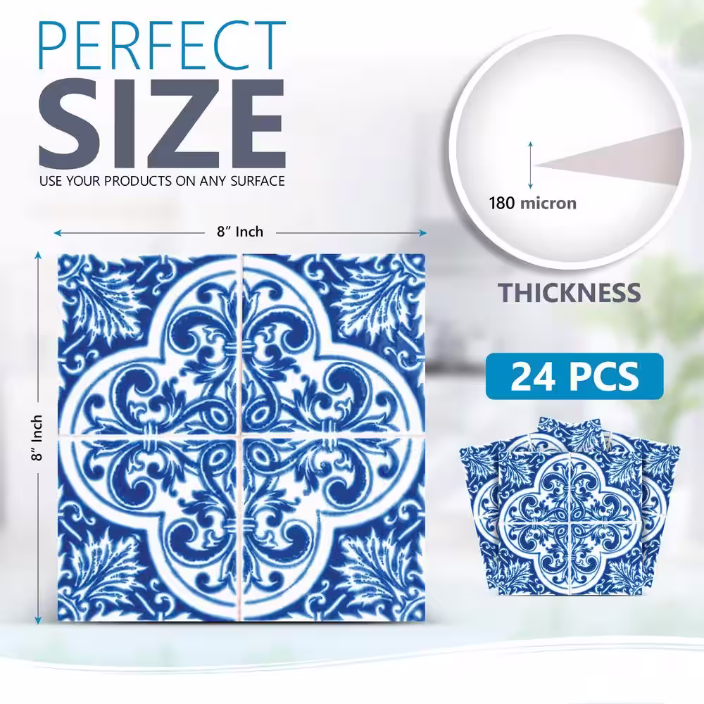 None Blue/White H14 4 in. x 4 in. Vinyl Peel and Stick Tile (24 Tiles, 2.67 sq. ft./pack)