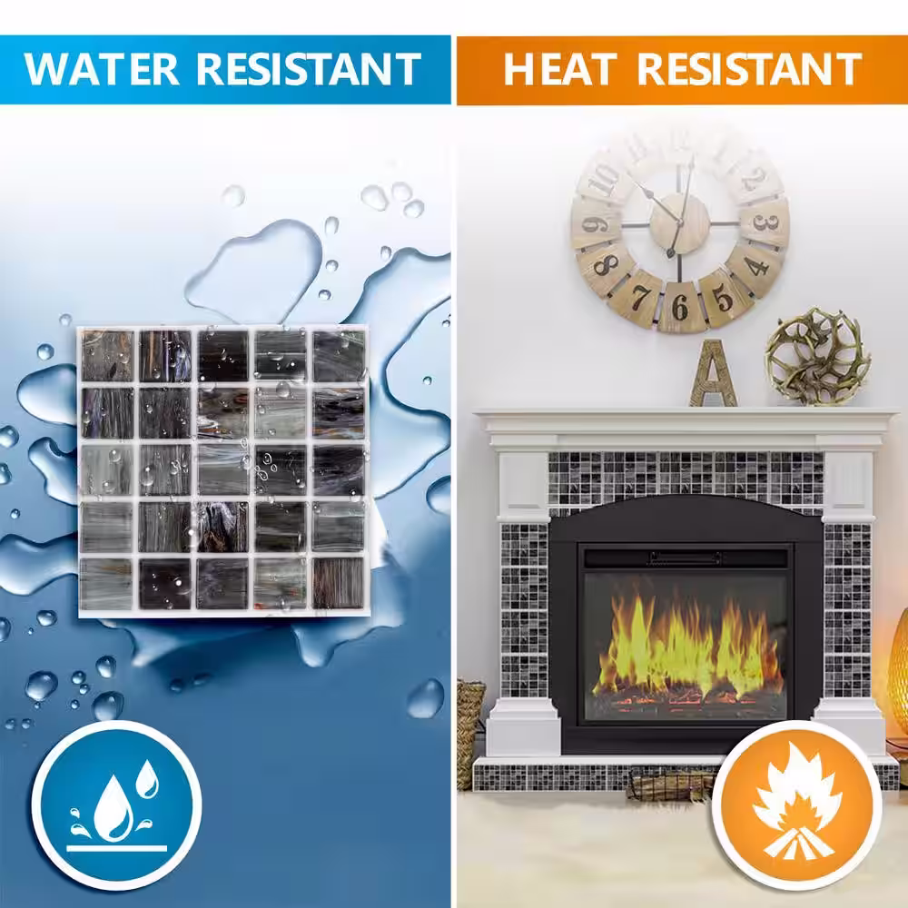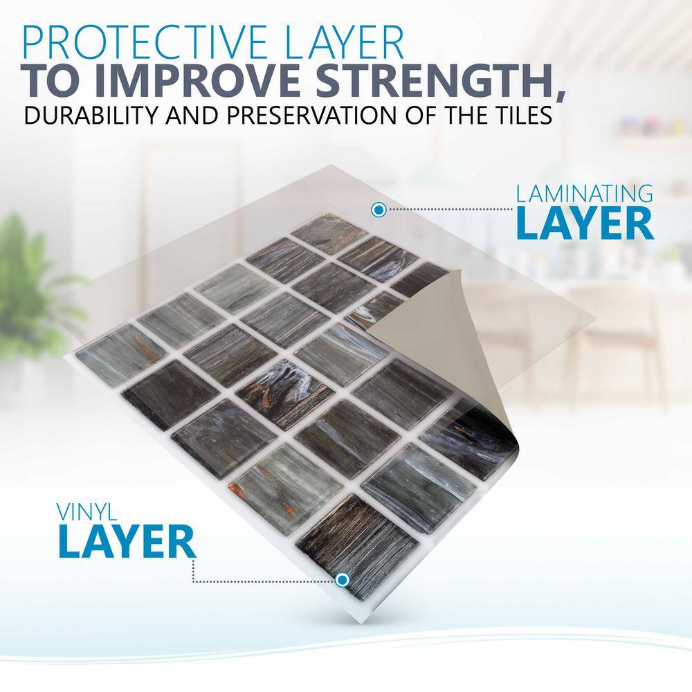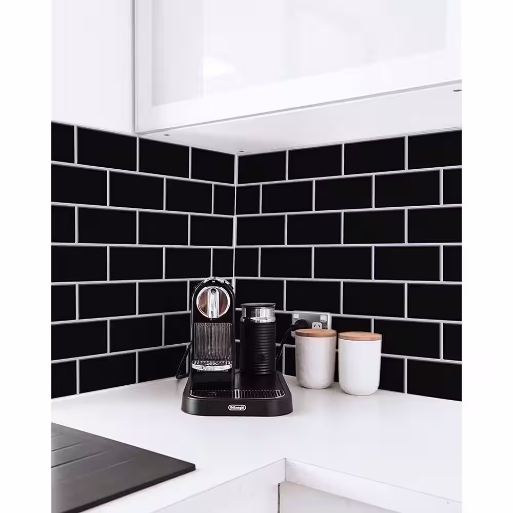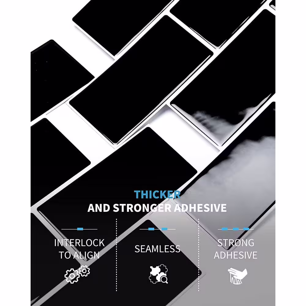 Art3d Metro 12 in. x 12 in. Glossy Black Vinyl Peel and Stick Backsplash Tile (10 sq.ft./pack)