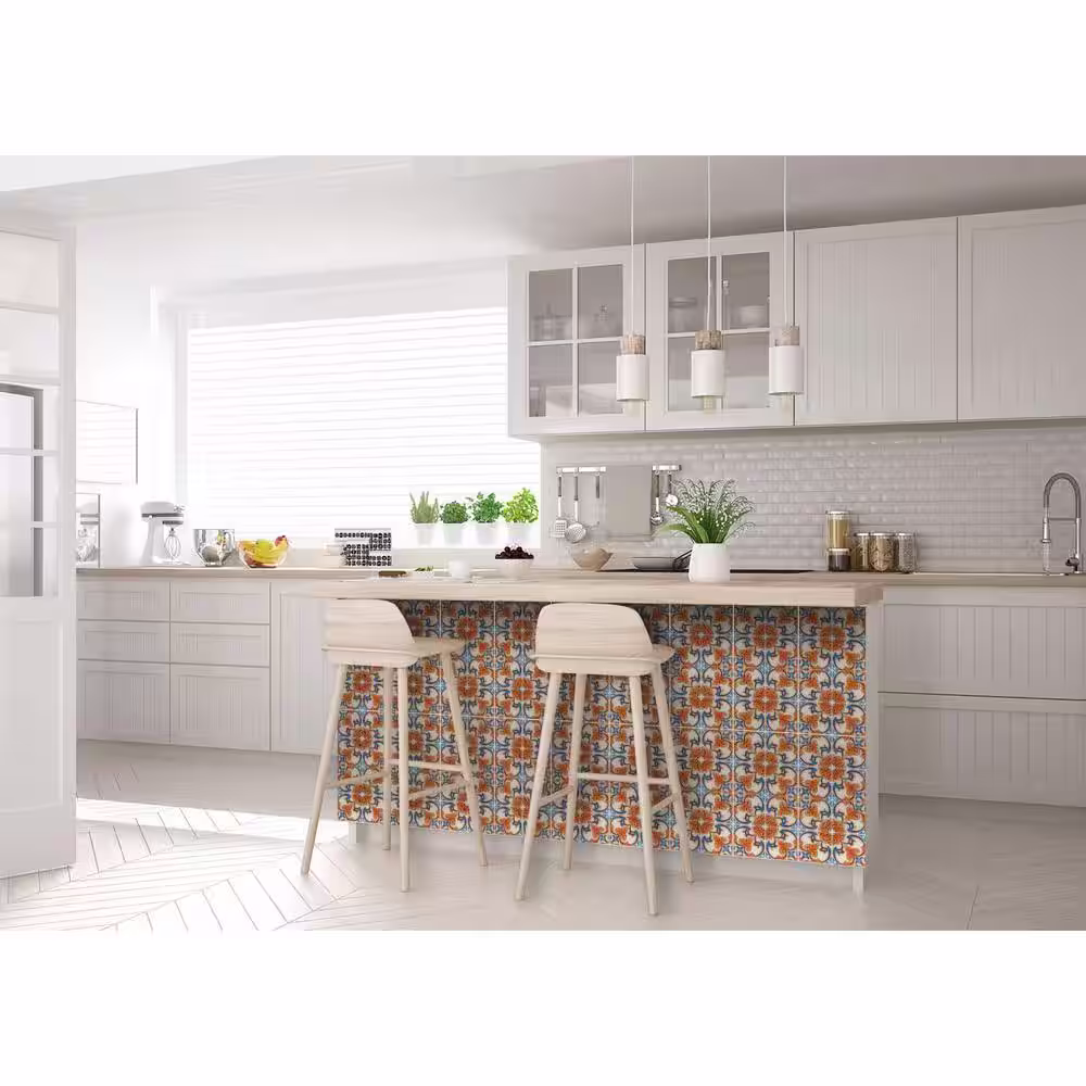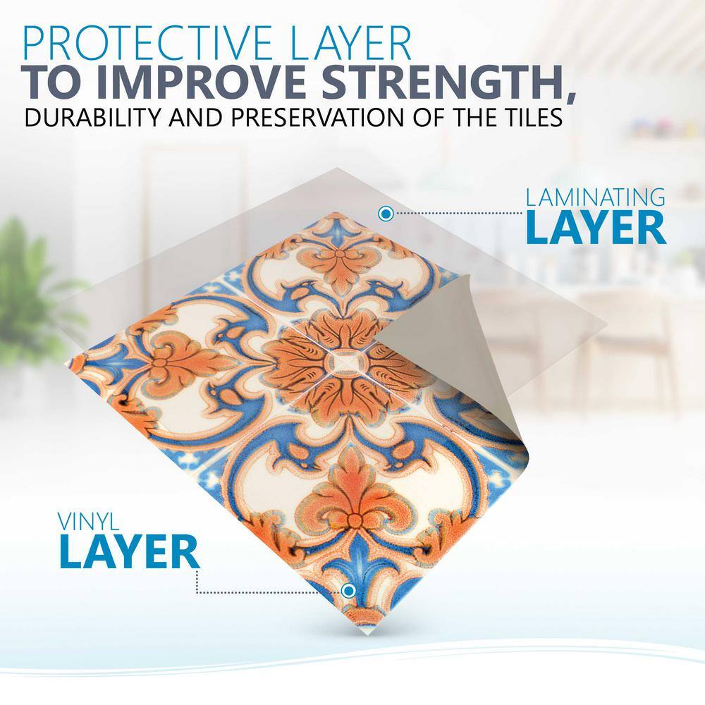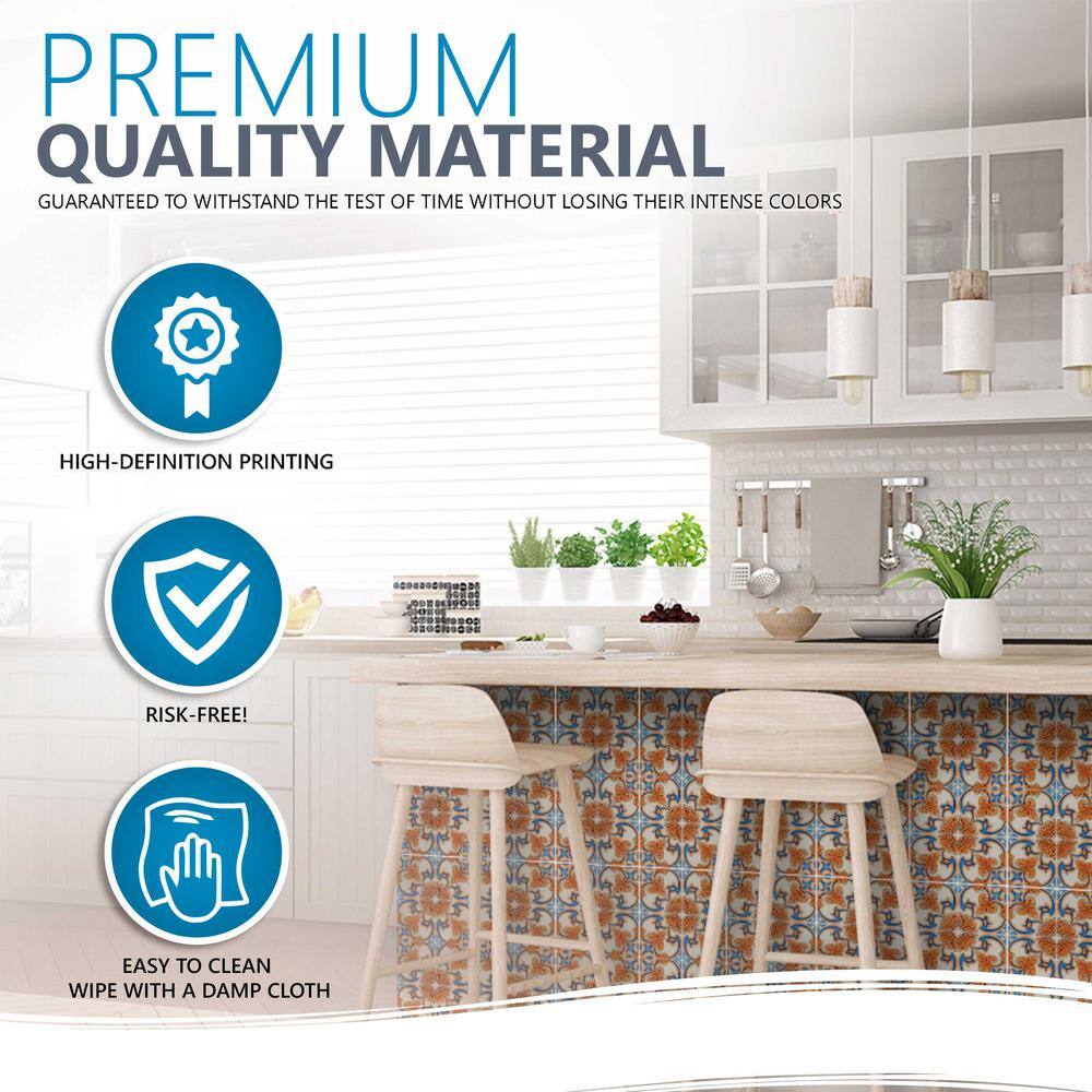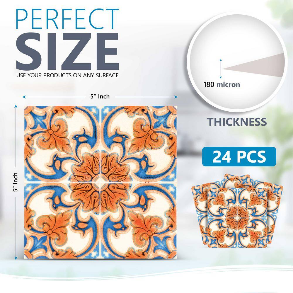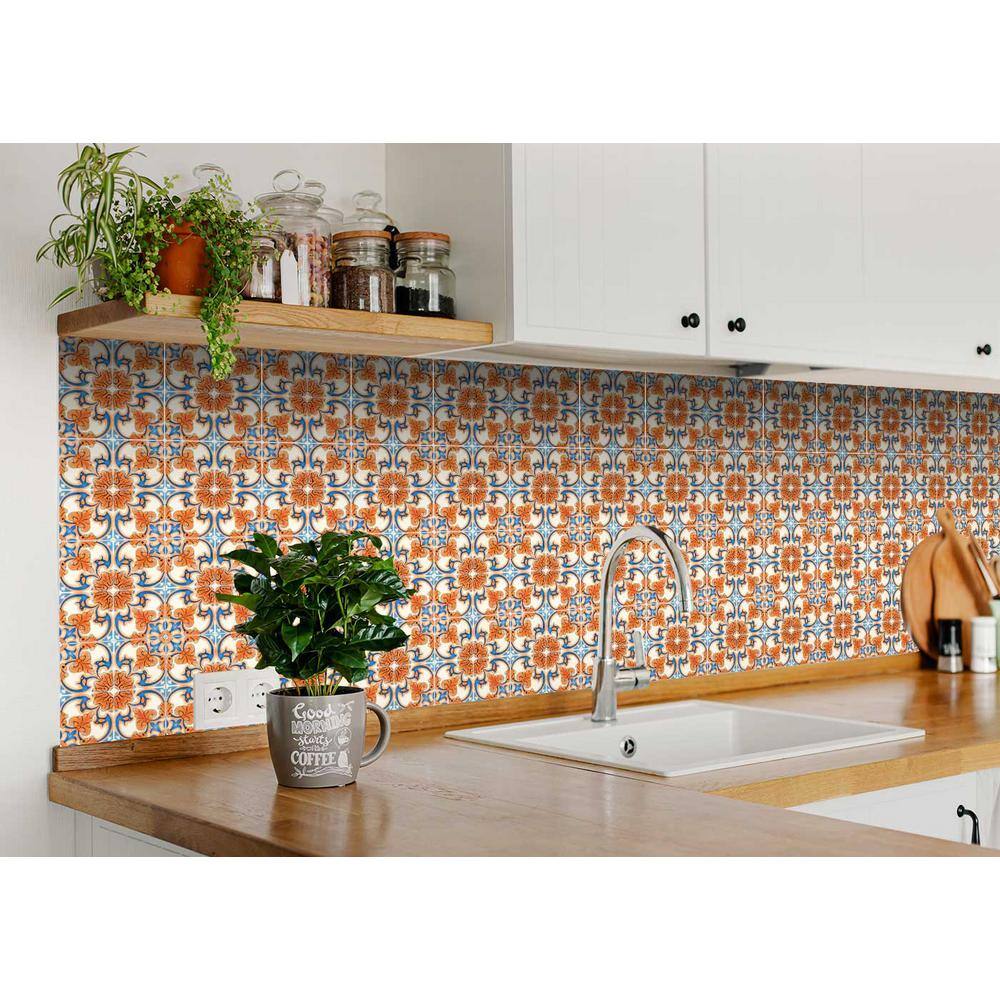 None Blue and Orange H7 5 in. x 5 in. Vinyl Peel and Stick Tile (24 Tiles, 4.17 sq. ft./pack)