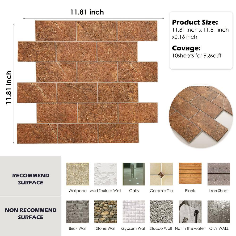 Yipscazo Subway Collection Amber Sandstone 12 in. x 12 in. PVC Peel and Stick Tile (5 sq. ft./5-Sheets)