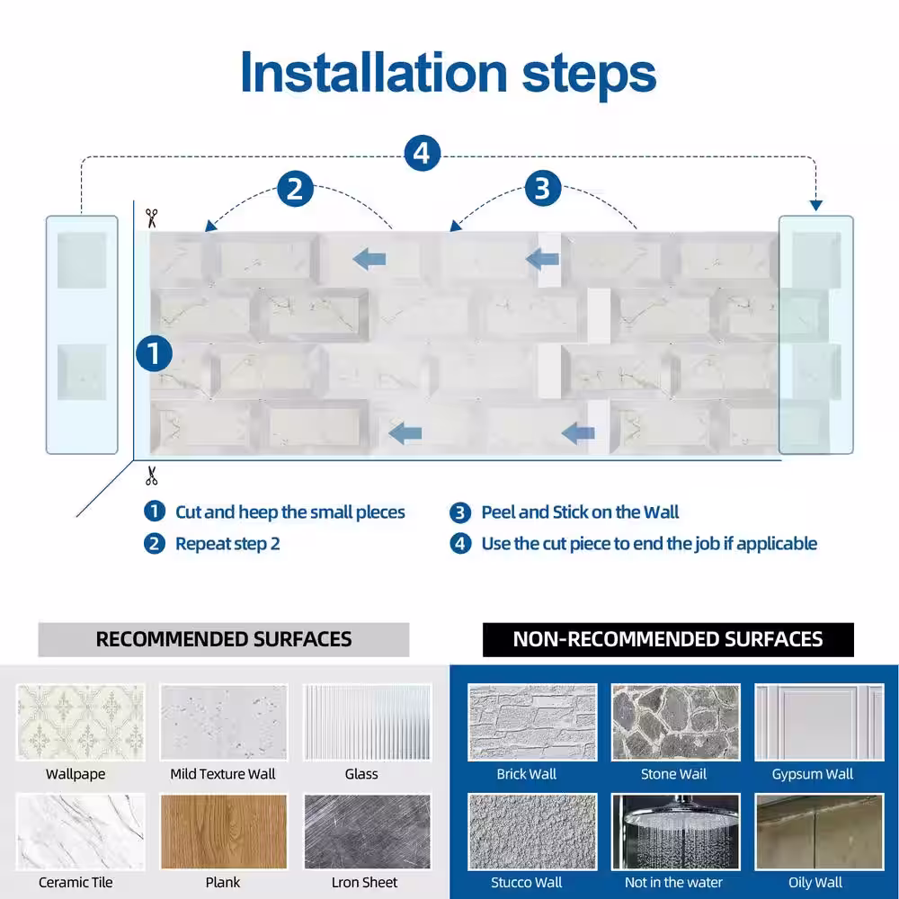 None Peel and Stick Wall Tiles for Kitchen Backsplash Bathroom and Living Room
