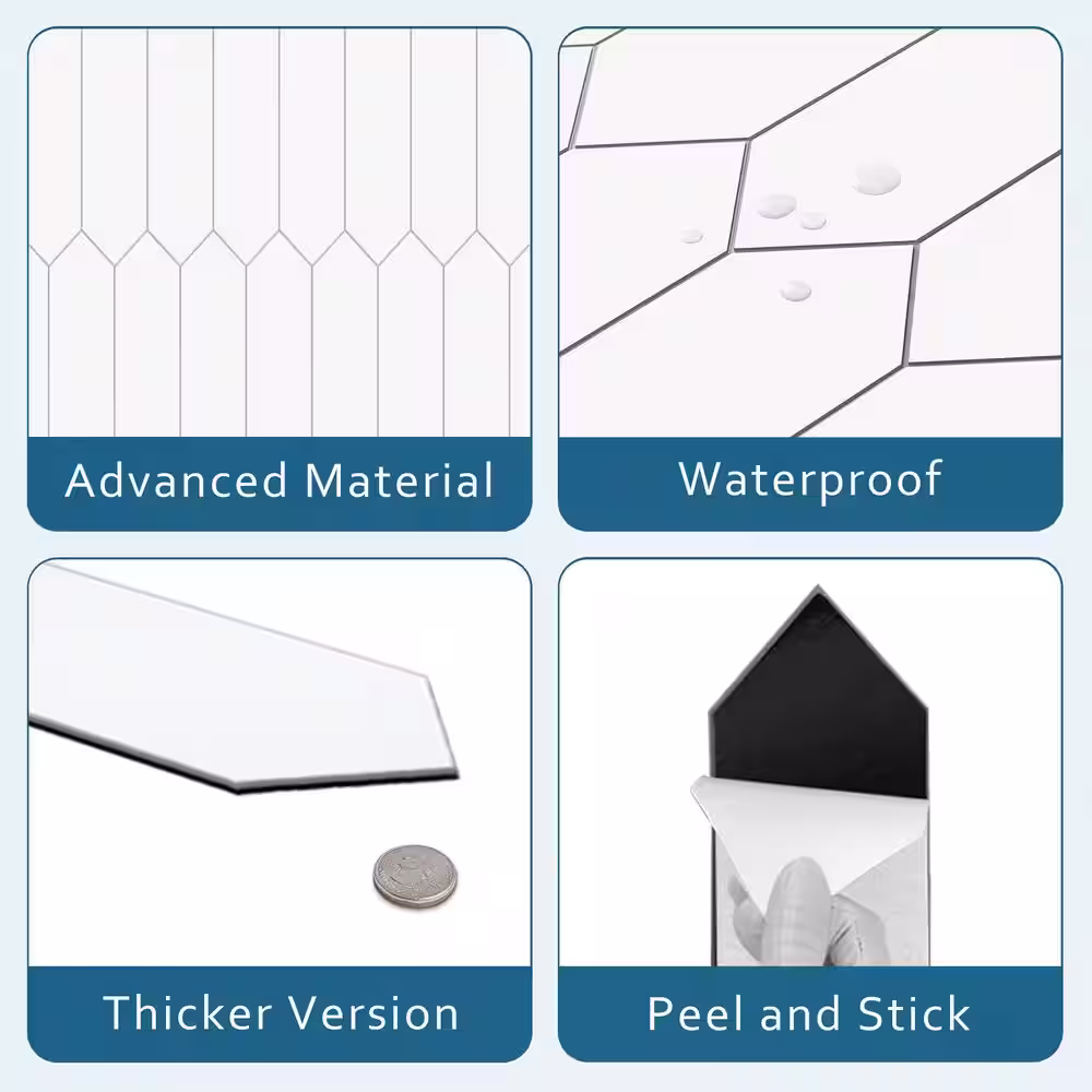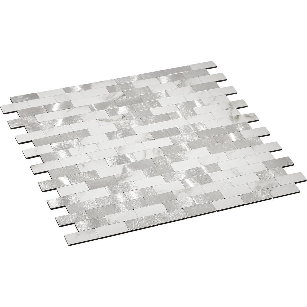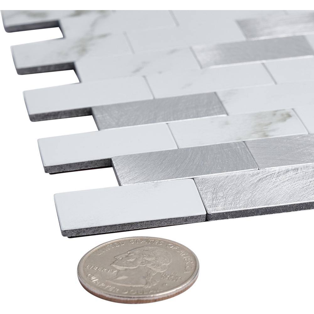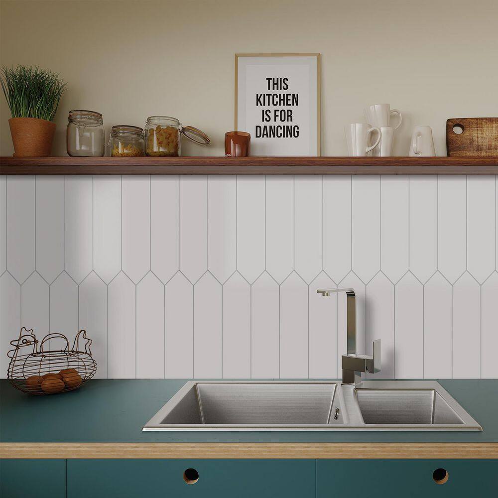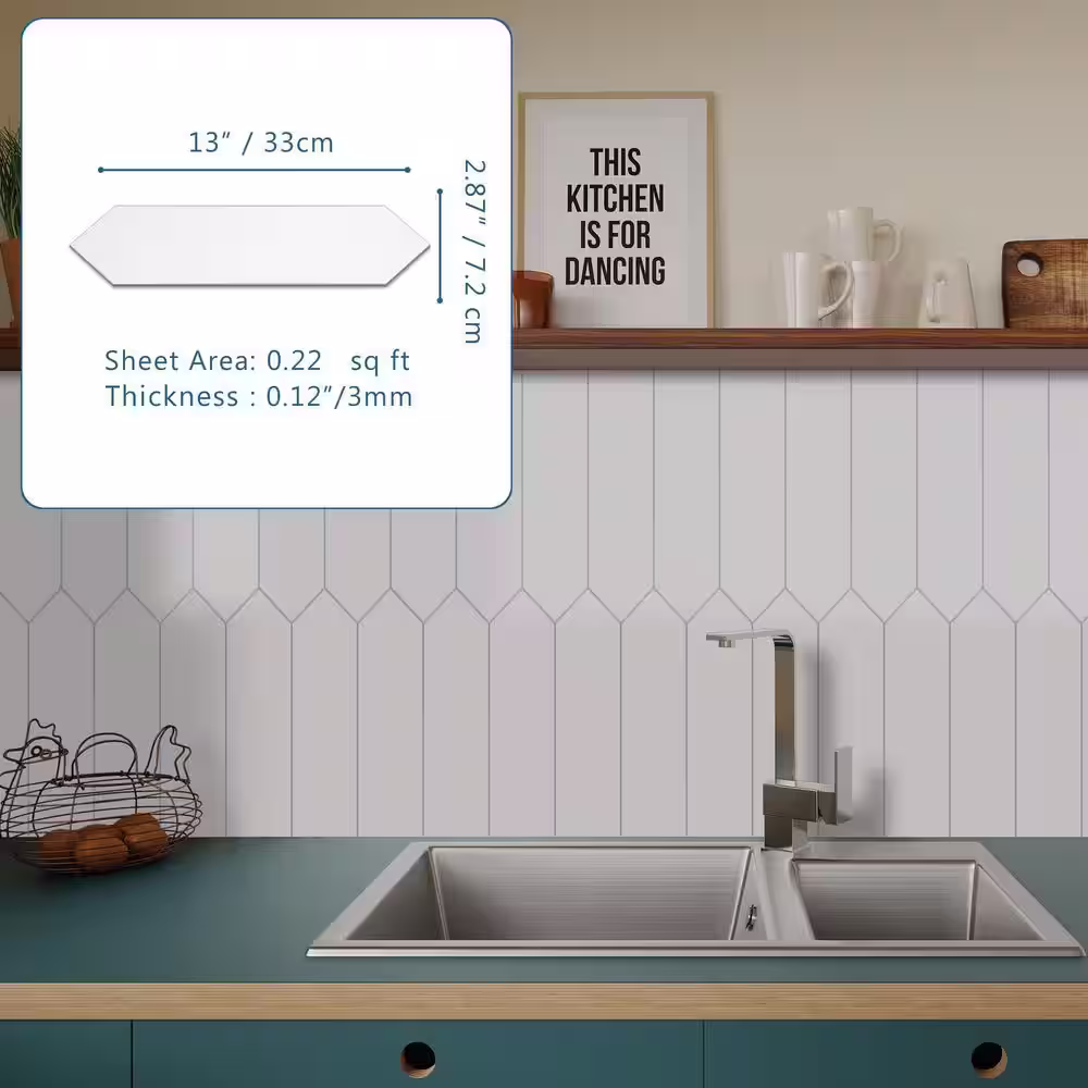 None Picket 13 in. x 2.87 in. White Peel and Stick backsplash Stone Composite Wall Tile (50 Tiles, 11 sq. ft.)