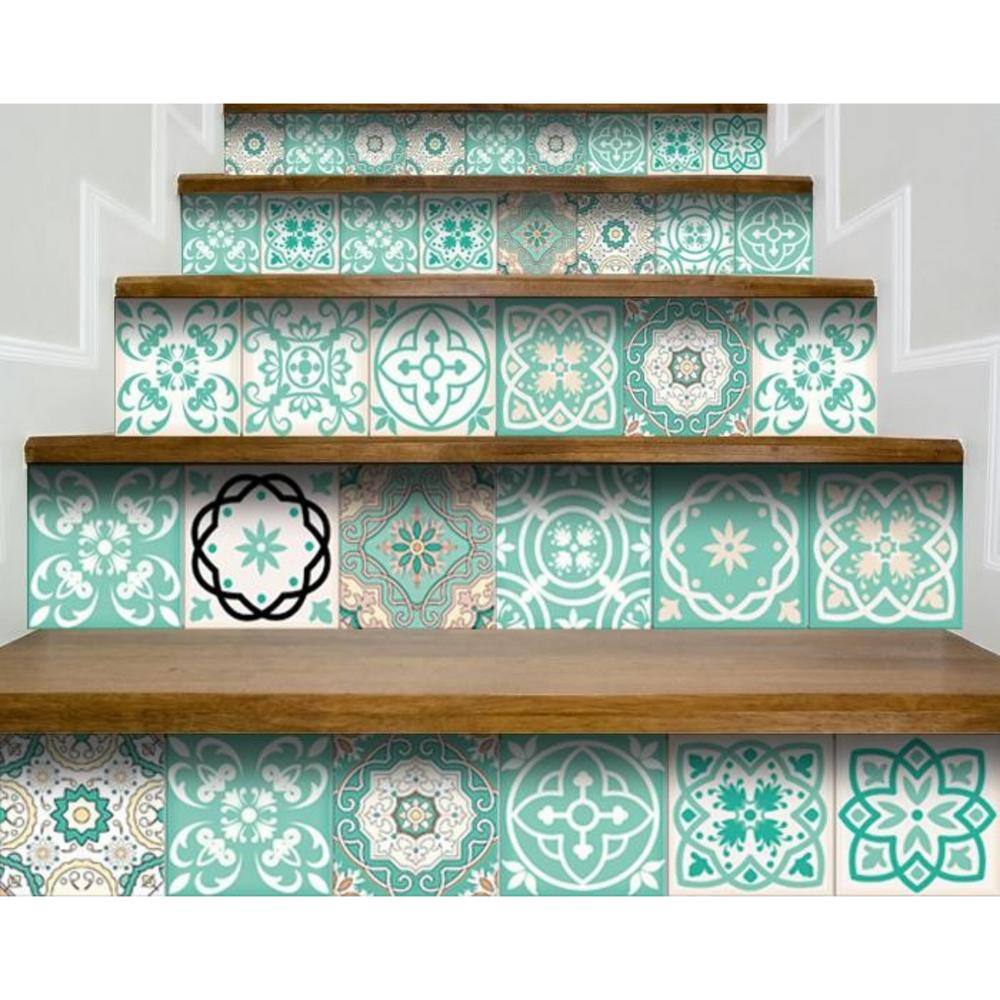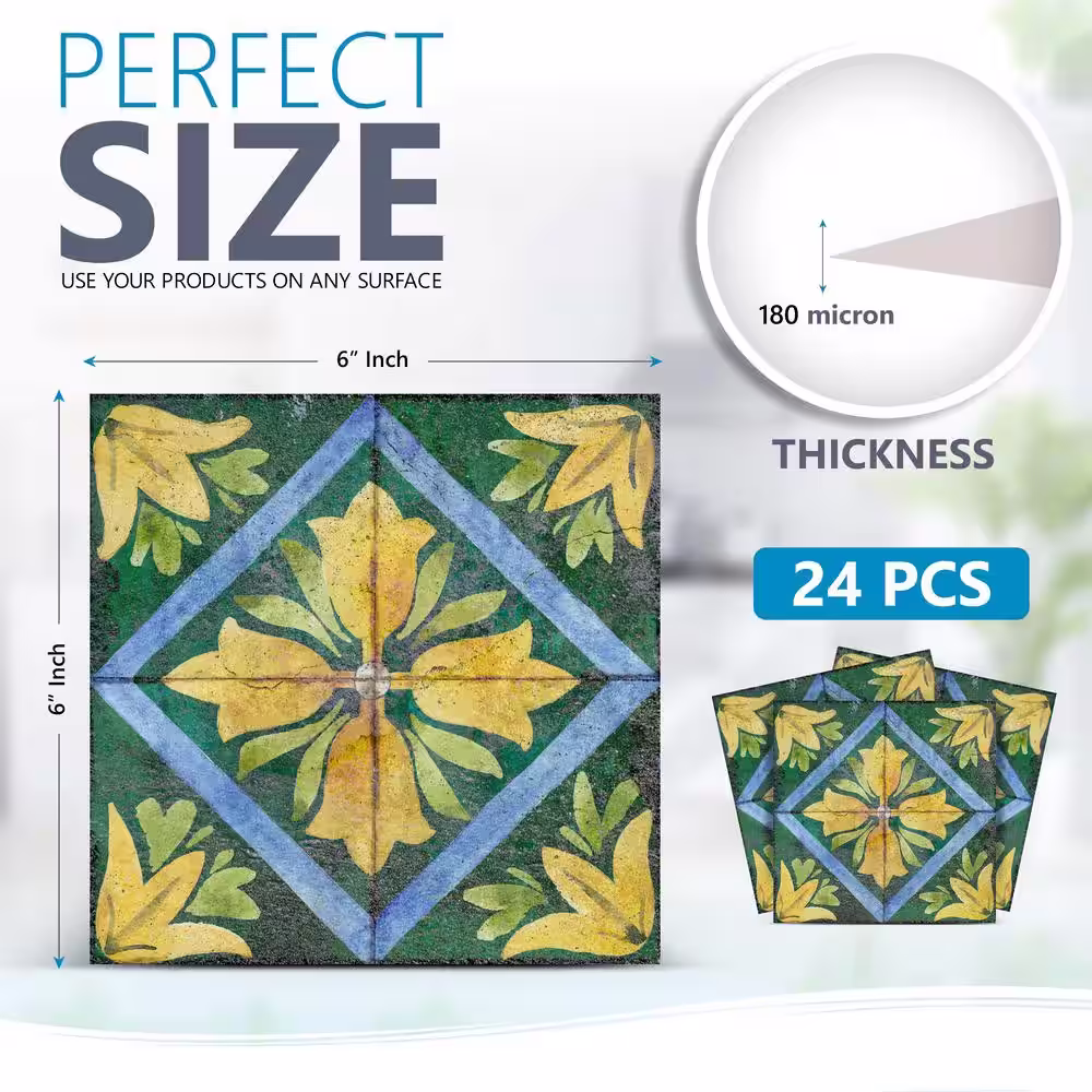 None Green, Yellow, and Blue R48 6 in. x 6 in. Vinyl Peel and Stick Tile (24-Tiles, 6 sq. ft. / pack)