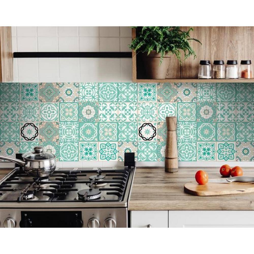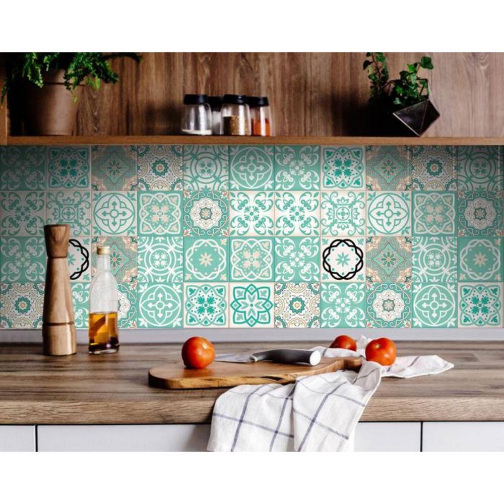 HomeRoots Amelia Green 7 in. x 7 in. Vinyl Peel and Stick Tile (8.17 sq. ft./Pack)
