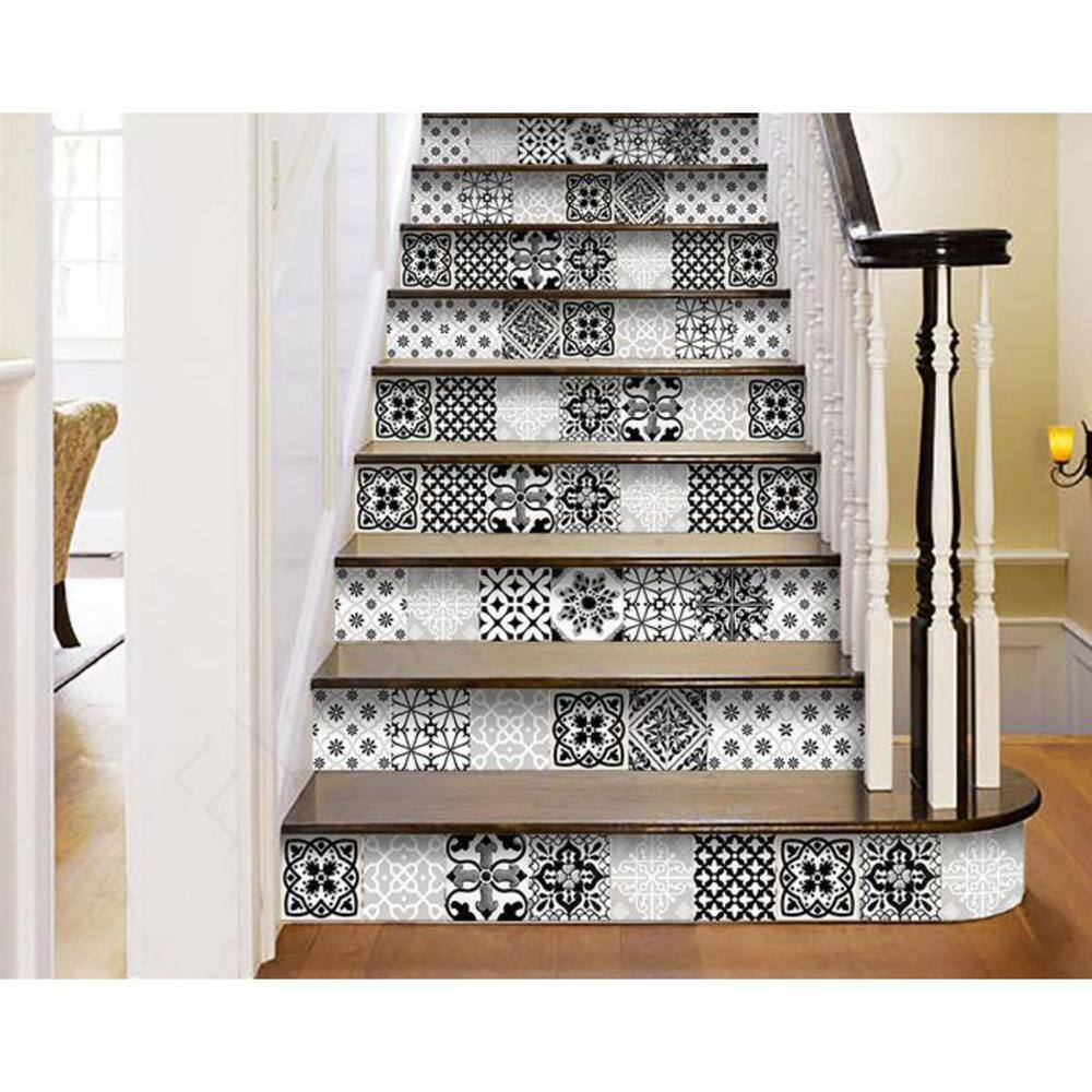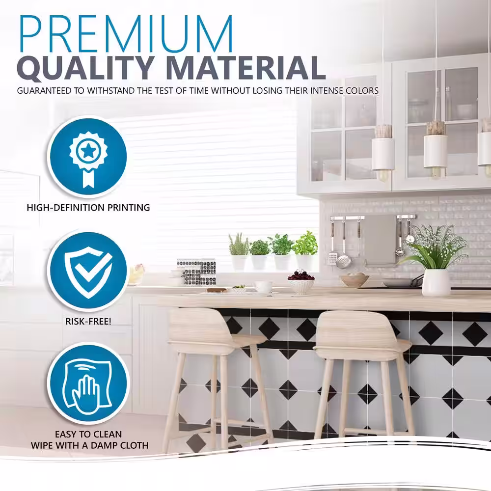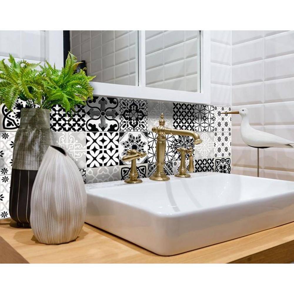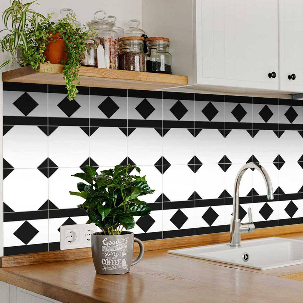 HomeRoots Black/White/Gray 6 in. x 6 in. Vinyl Peel and Stick Removable Tile Stickers (6 sq. ft./Pack)