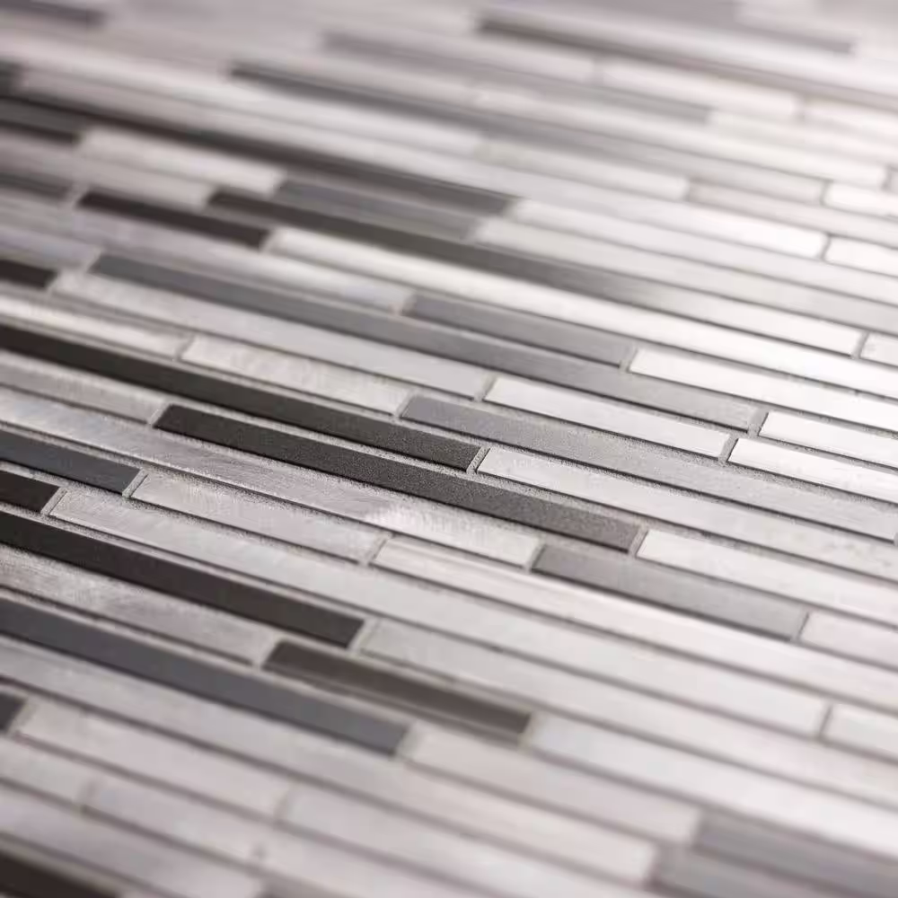 ABOLOS City Lights NY Gray Thin Linear Mosaic 12 in. x 16 in. Brushed Aluminum Metal Wall Tile (1 Sheet)