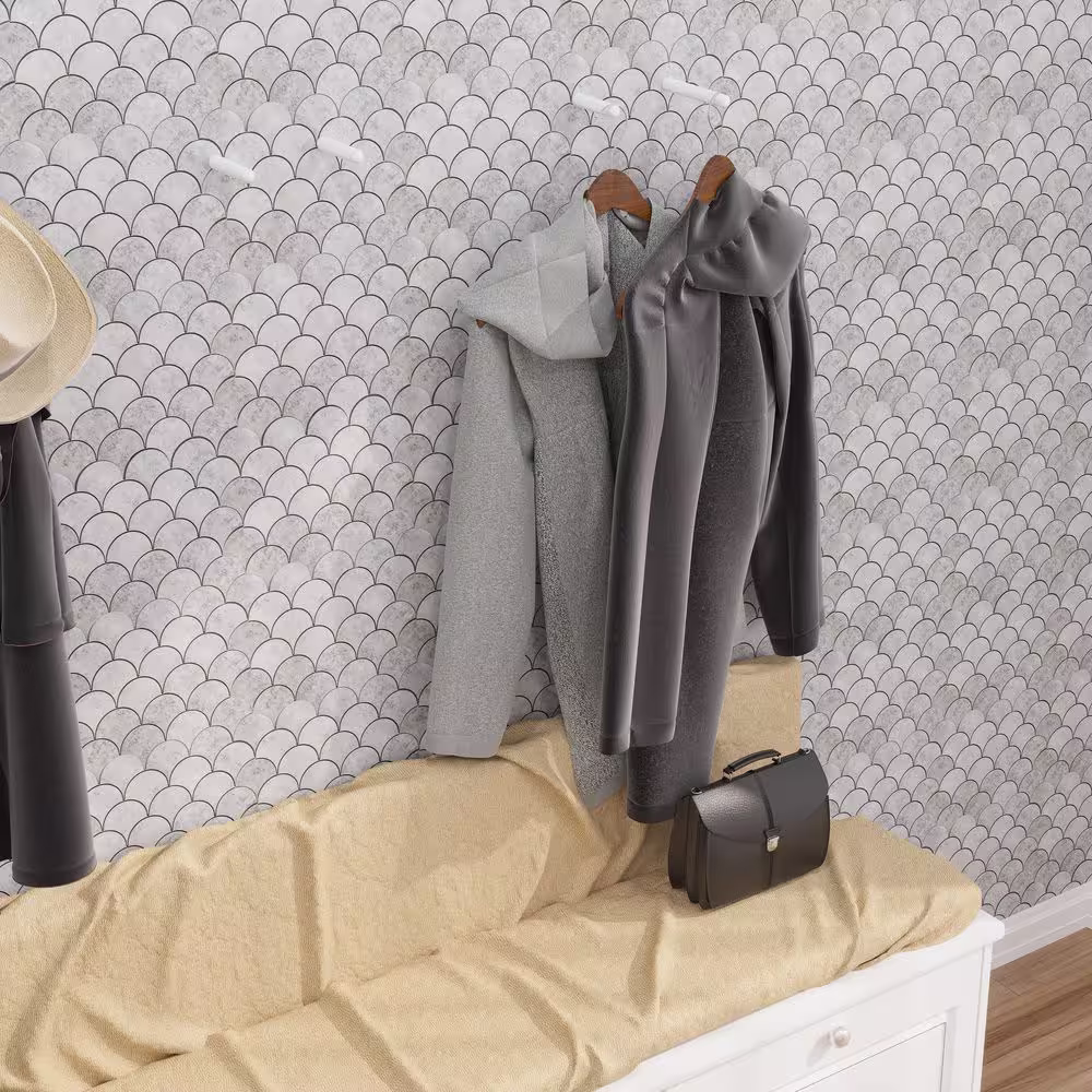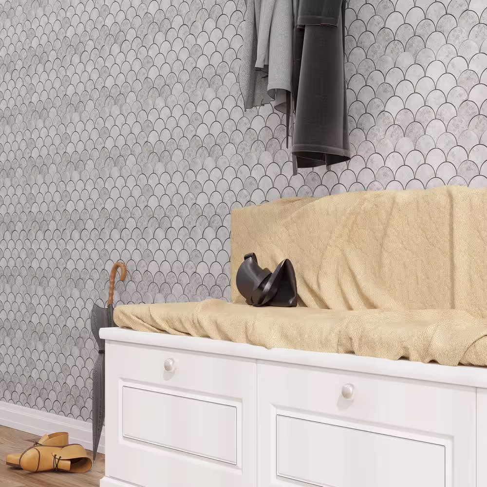 InHome Basketweave 10 in. x 10 in. Off White Carrara Peel and Stick Backsplash Tiles