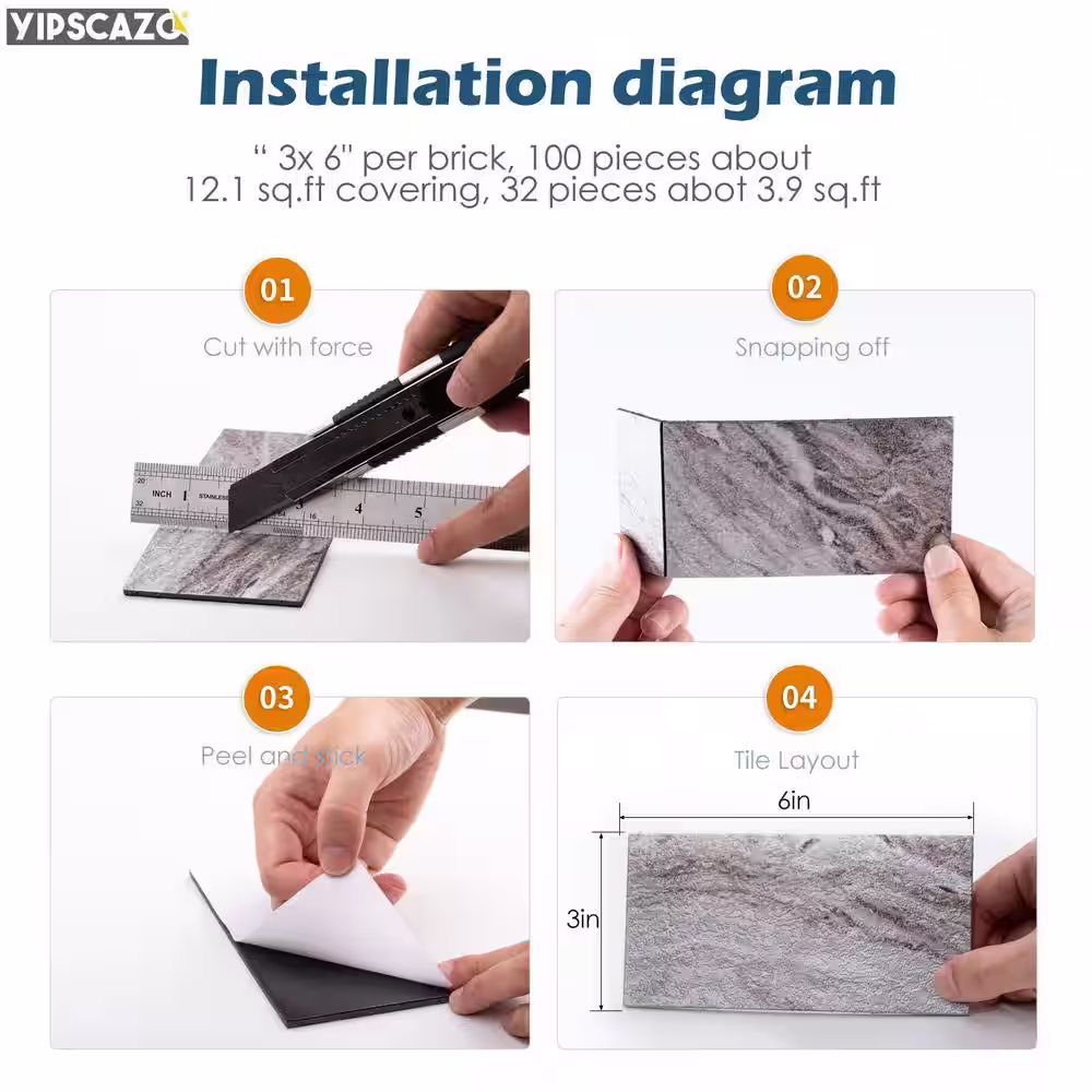 None Subway Collection Silvery 3 in. x 6 in. PVC Peel and Stick Tile (4 sq. ft./32-Sheets)