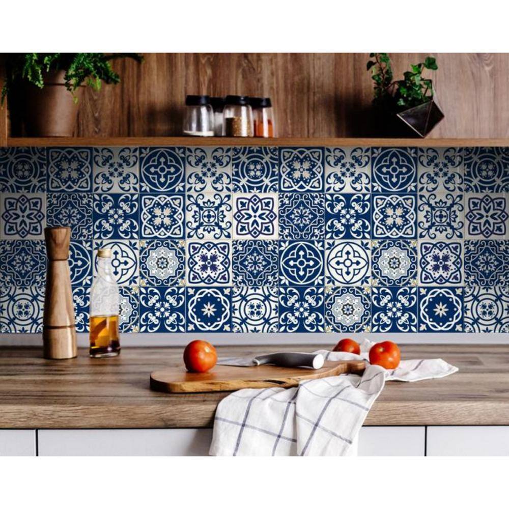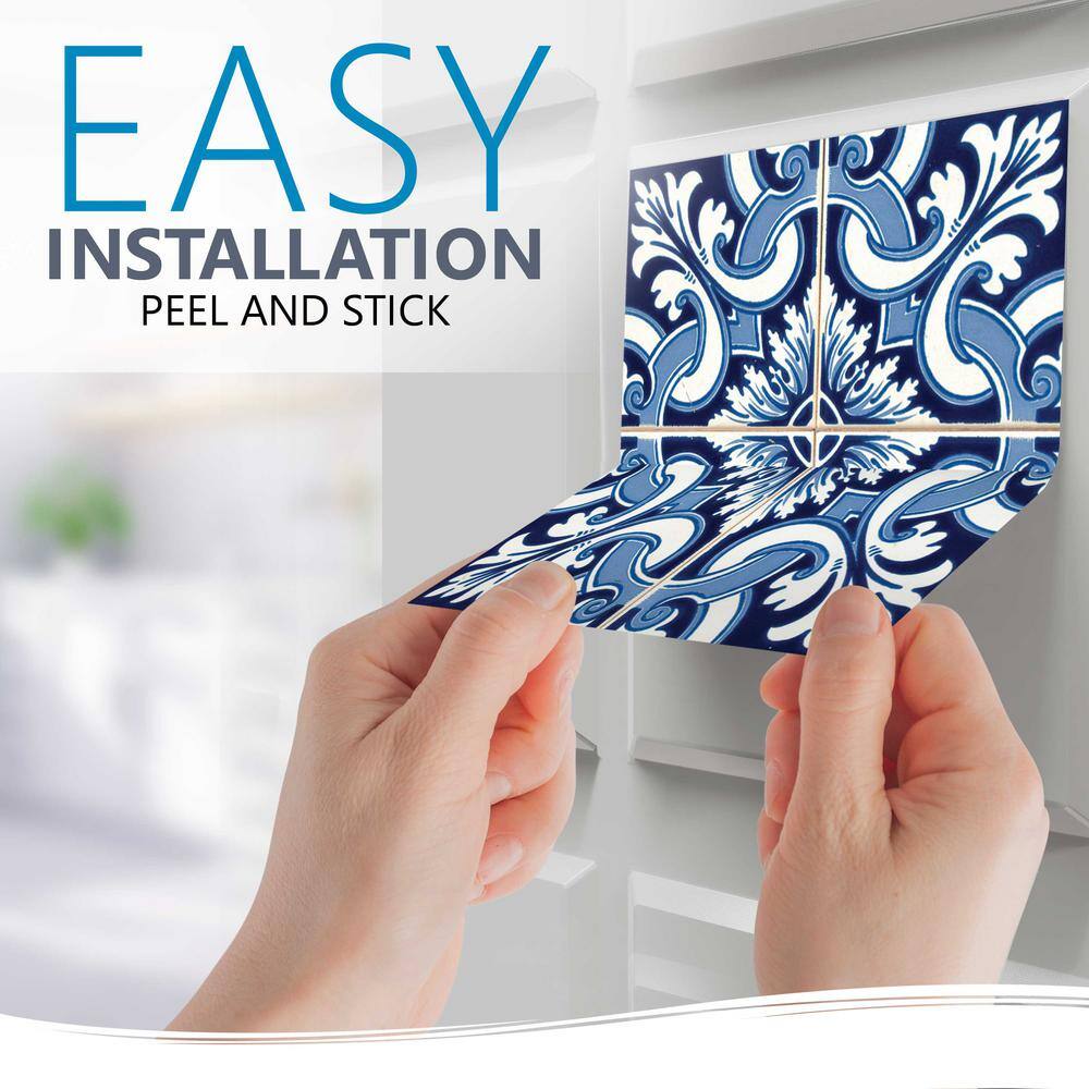 HomeRoots Amelia Blue 6 in. x 6 in. Vinyl Peel and Stick Tile (6 sq. ft./Pack)