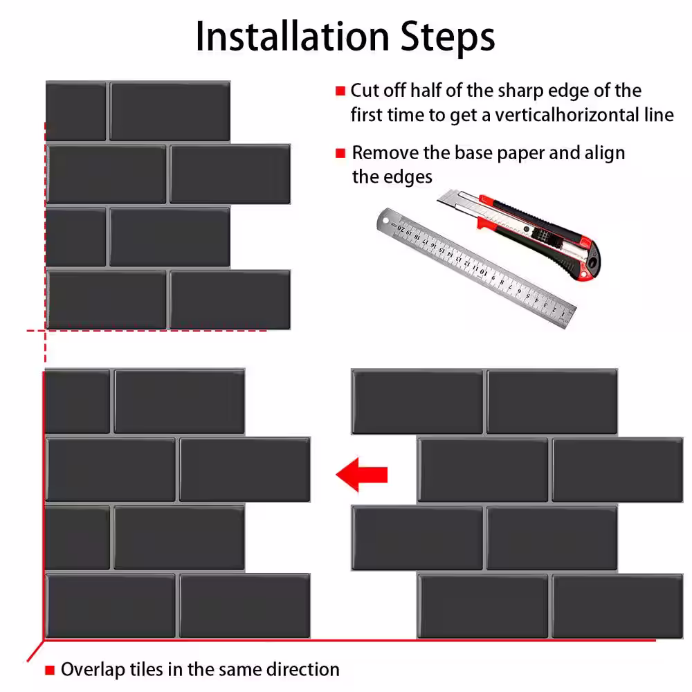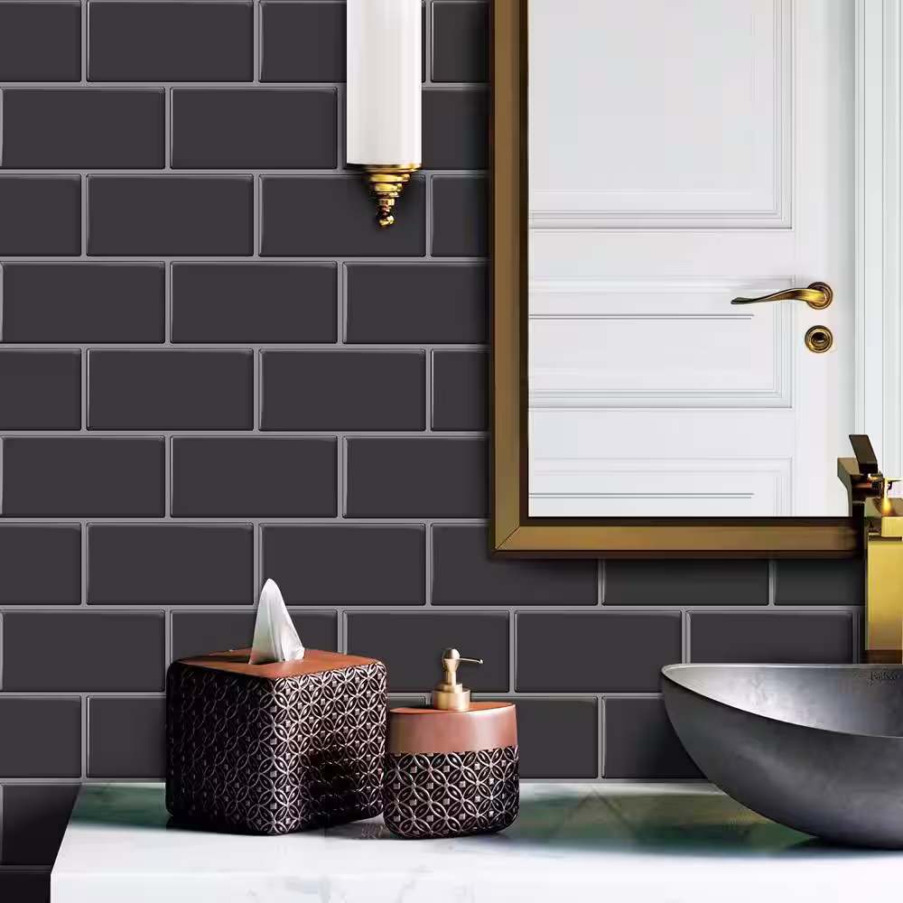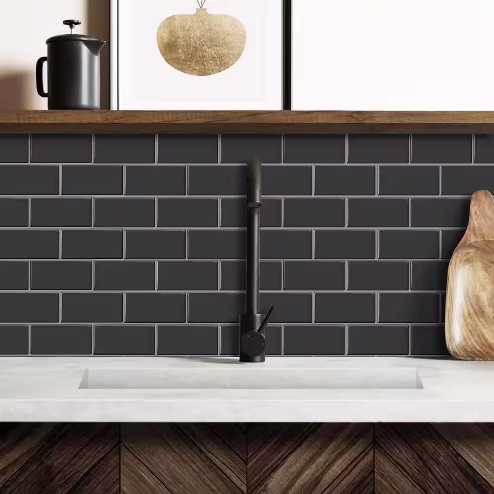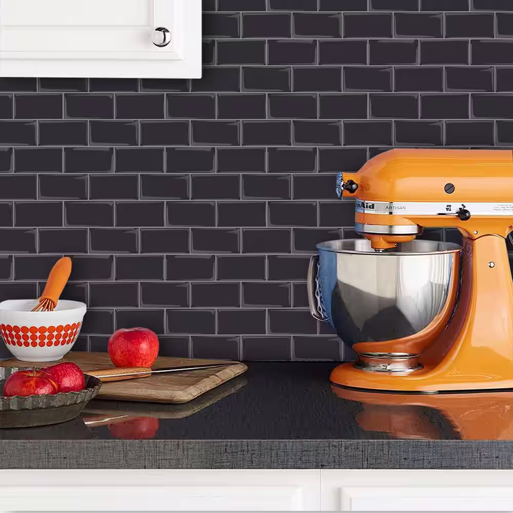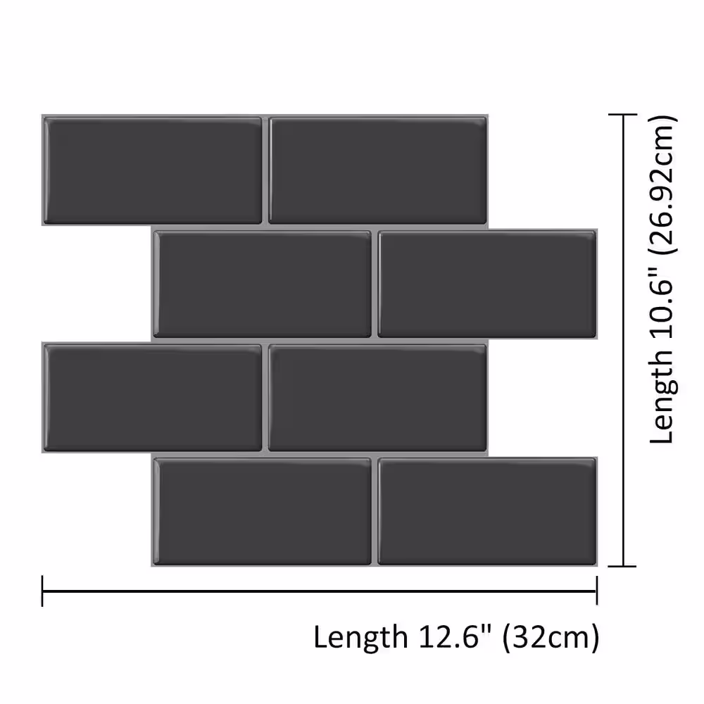 MURENO Black Subway 10.00 in. x 12.60 in. Vinyl Peel and Stick Backsplash Tile (3.5 sq. ft./pack)