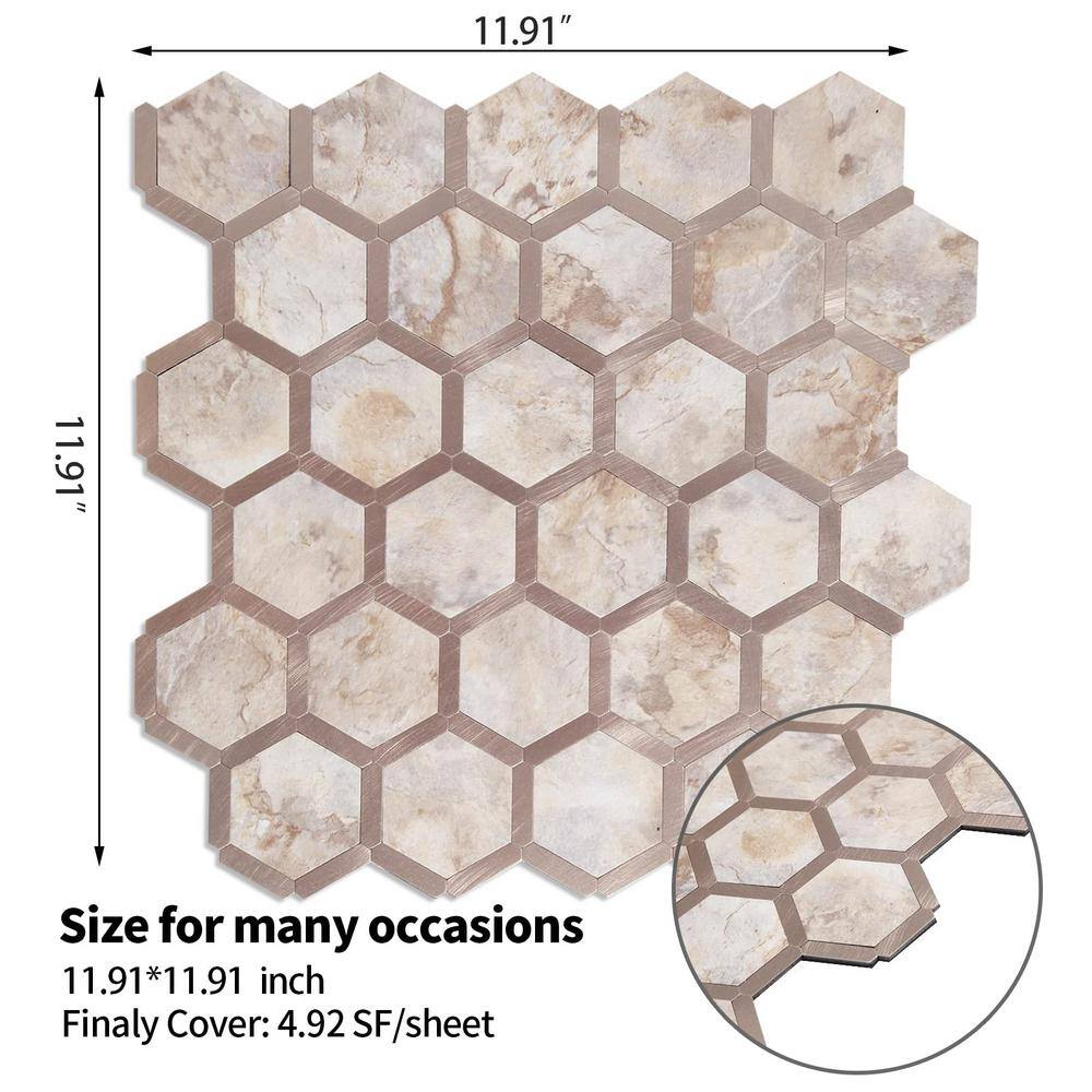 None Hexagon Ecru with Gold 12 in. x 12 in. PVC Peel and Stick Backsplash Wall Tile (5 sq.ft./5-Sheets)