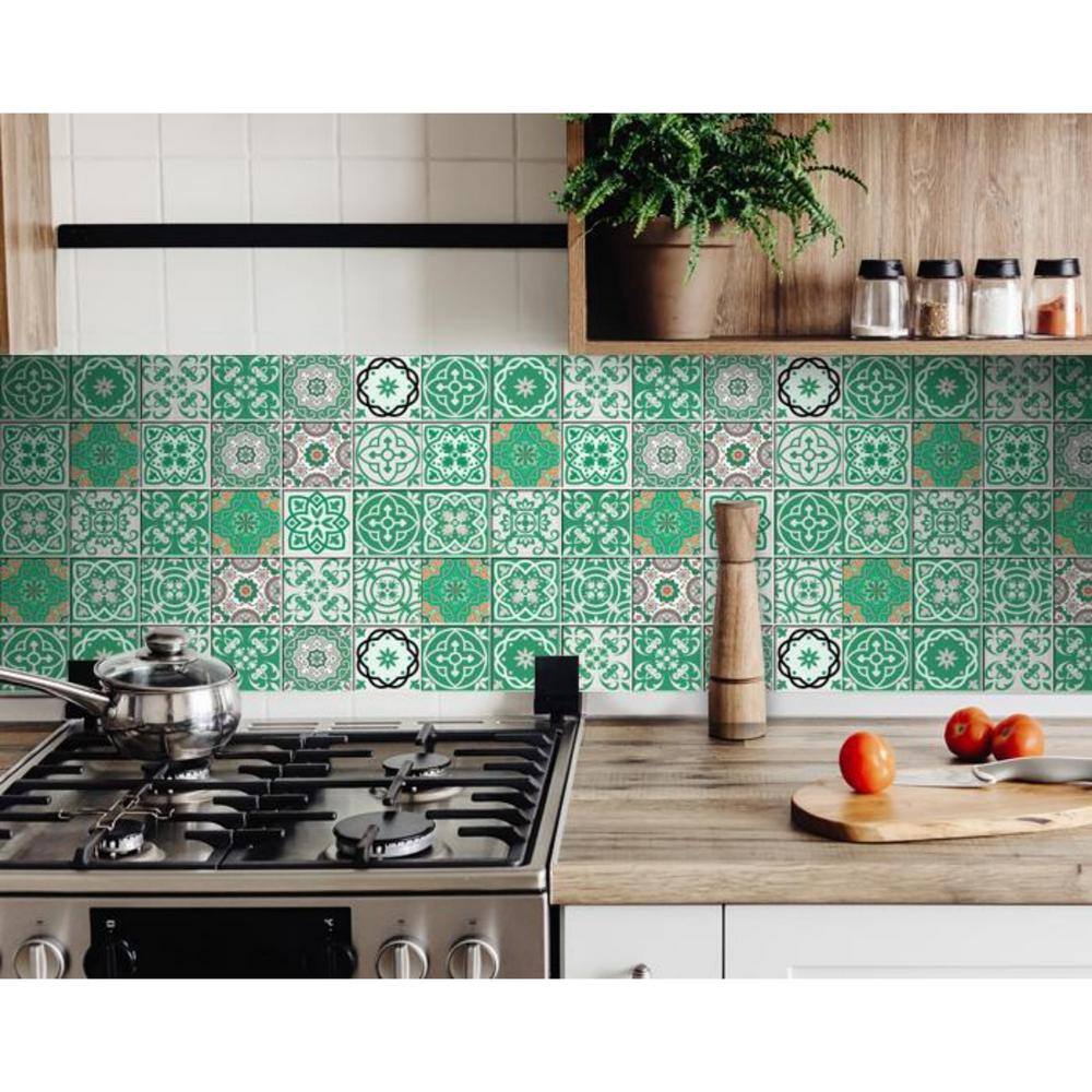 HomeRoots Amelia Green 4 in. x 4 in. Vinyl Peel and Stick Tile (2.67 sq. ft./Pack)