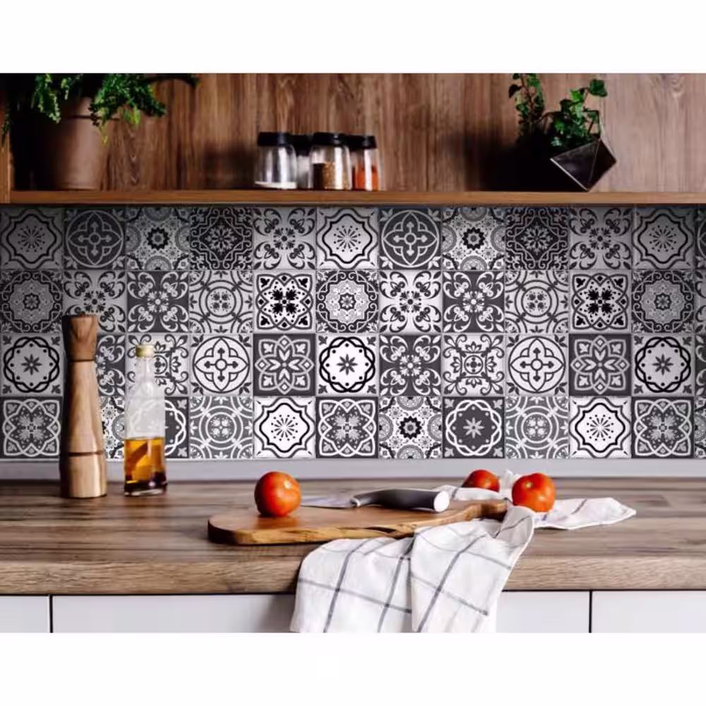 None Black and White R40 5 in. x 5 in. Vinyl Peel and Stick Tile (24 Tiles, 4.17 sq.ft./pack)