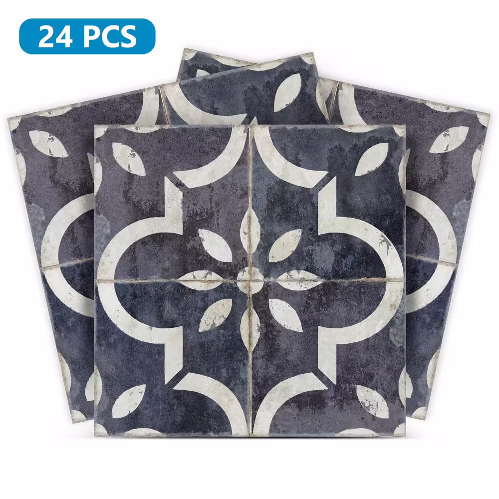 HomeRoots Amelia Black 6 in. x 6 in. Vinyl Peel and Stick Tile (6 sq. ft./Pack)
