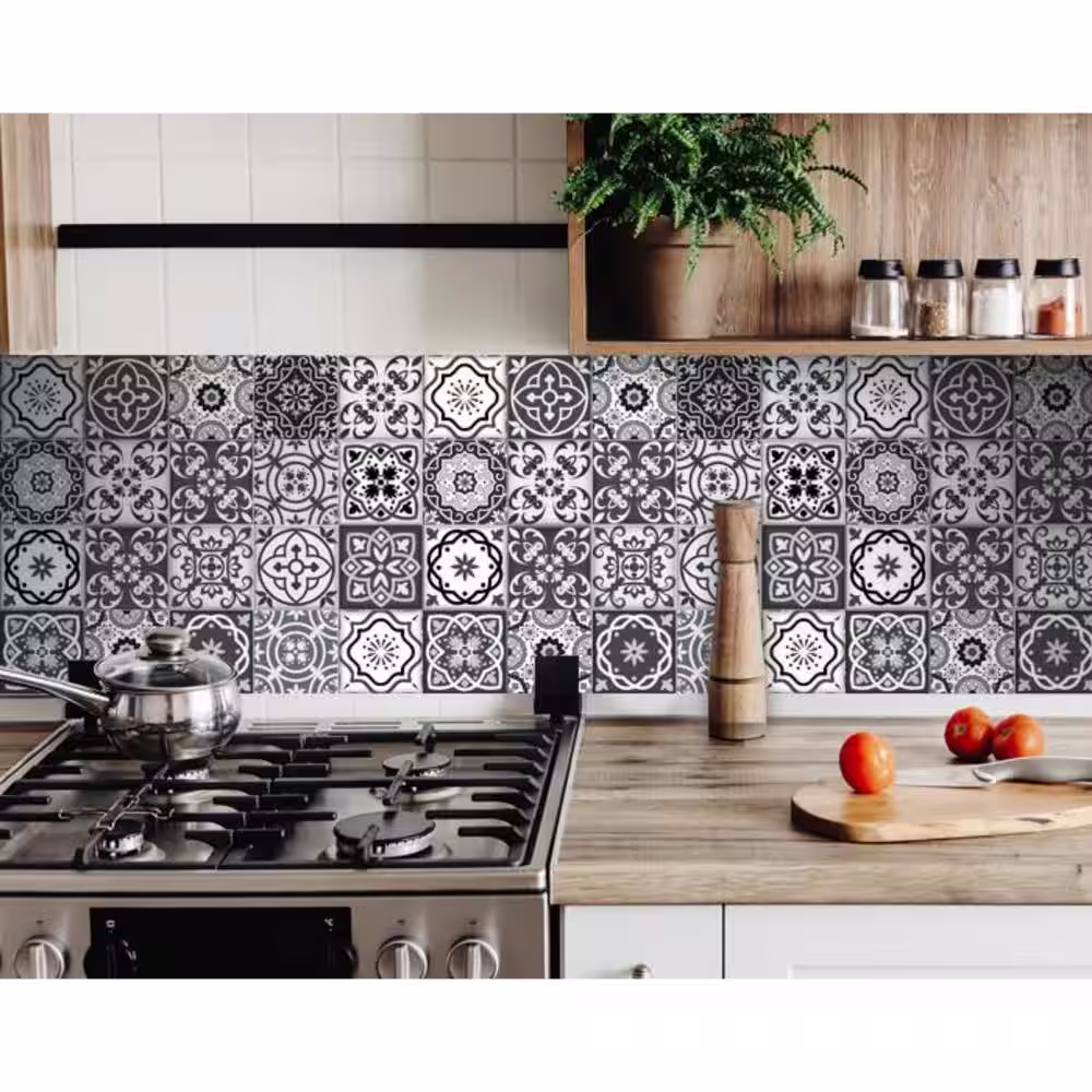 smart tiles Vintage Bazzzini Grigio Gray 7.75 in. x 7.75 in. Vinyl Peel and Stick Tile (1.59 sq. ft./4-pack)