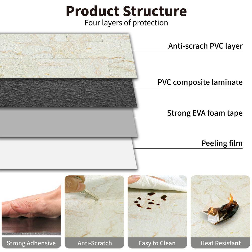 None Marble Collection Creamy Stone 12 in. x 12 in. PVC Peel and Stick Tile (5 sq. ft./5-Sheets)