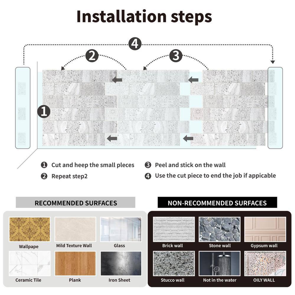 None Peel and Stick Wall Tiles for Kitchen Backsplash Bathroom and Living Room