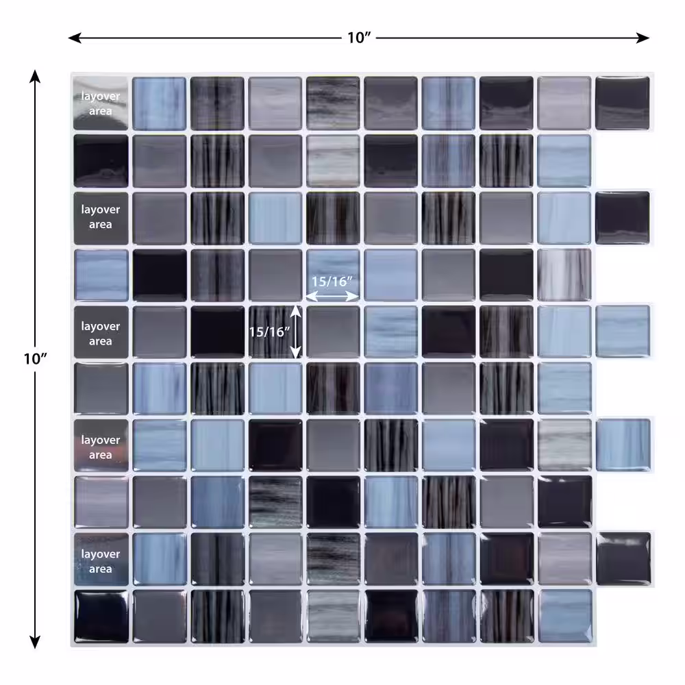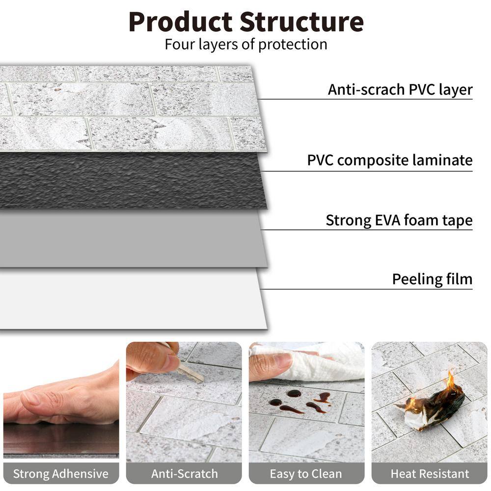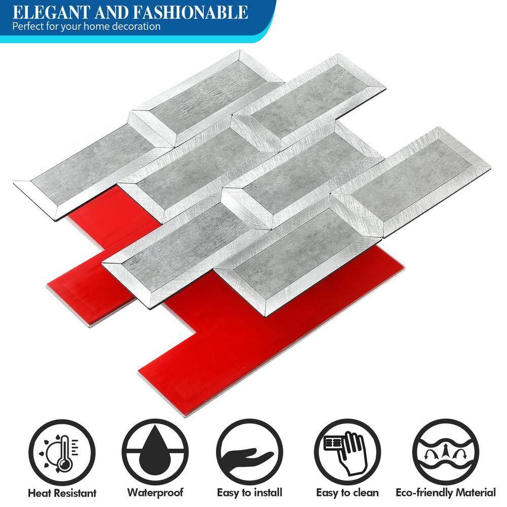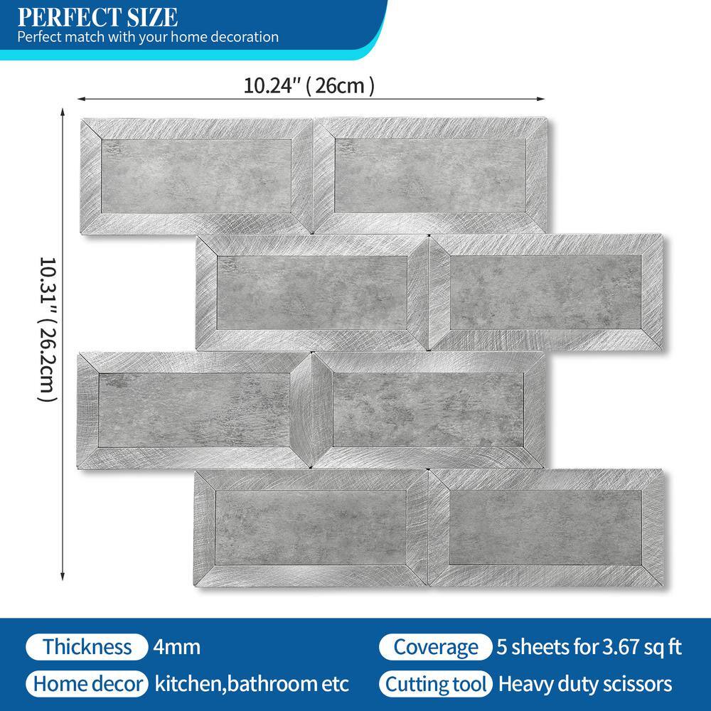 Yipscazo Subway Collection Grey 10.24 in. x 10.24 in. PVC Peel and Stick Tile