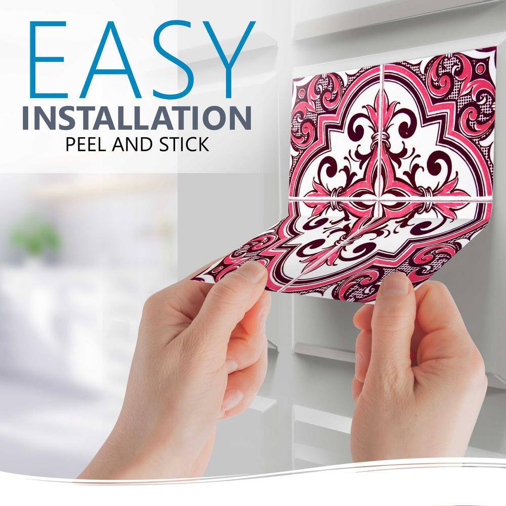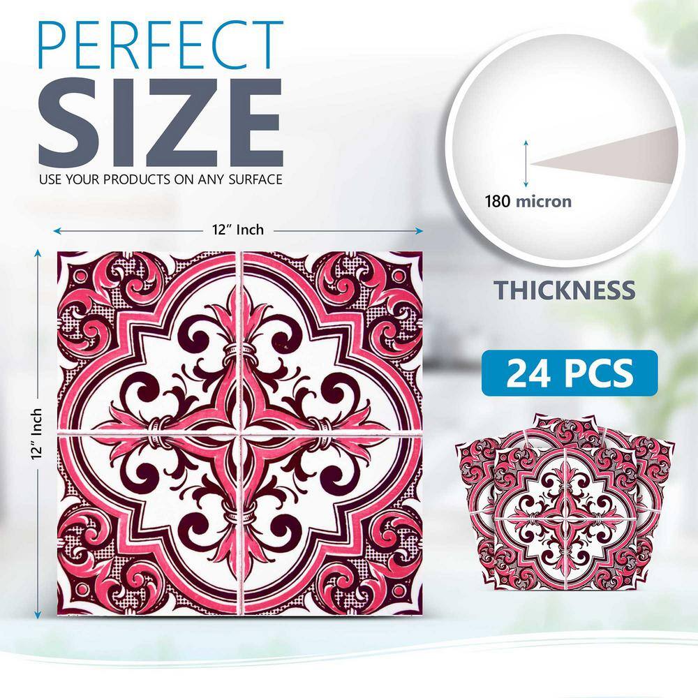 None Pink/White H52 12 in. x 12 in. Vinyl Peel and Stick Tile (24-Tiles, 24 sq. ft./Pack)