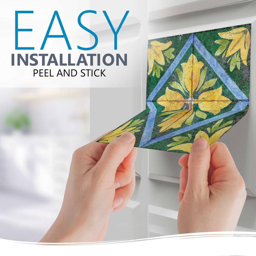 None Green, Yellow, and Blue R48 4 in. x 4 in. Vinyl Peel and Stick Tile (24-Tiles, 2.67 sq. ft. / pack)