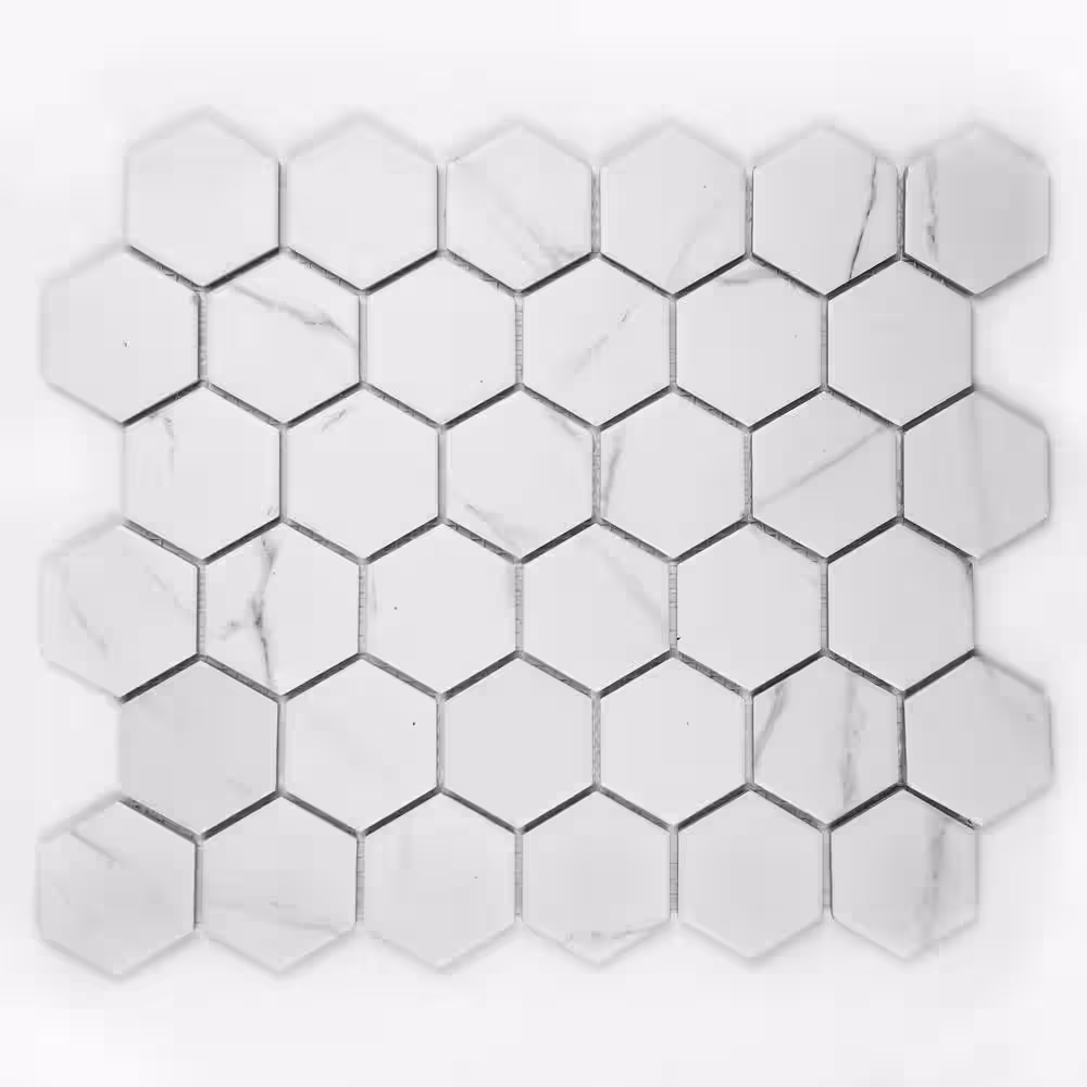 ABOLOS Monet Calacatta White Hexagon Mosaic 11 in. x 13 in. Glazed Porcelain Wall & Pool Tile (10 Sq. Ft./Case)