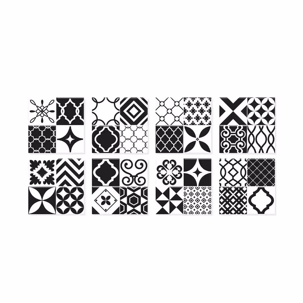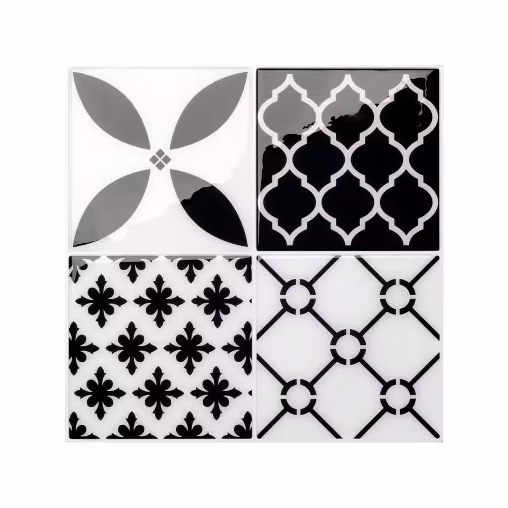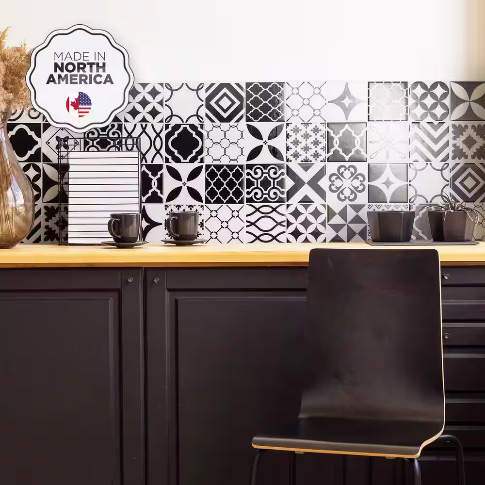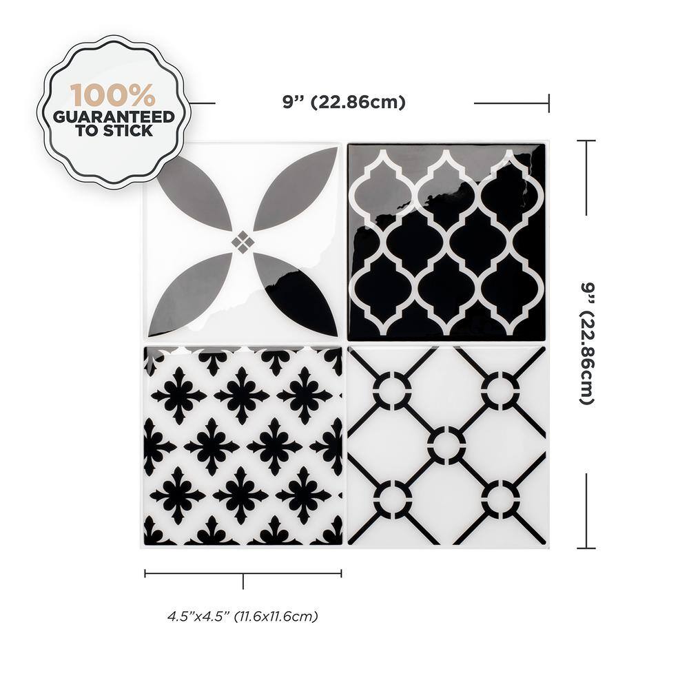 smart tiles Vintage Bilbao Black/White 9 in. x 9 in. Vinyl Peel and Stick Tile (2.20 sq. ft./4-pack)