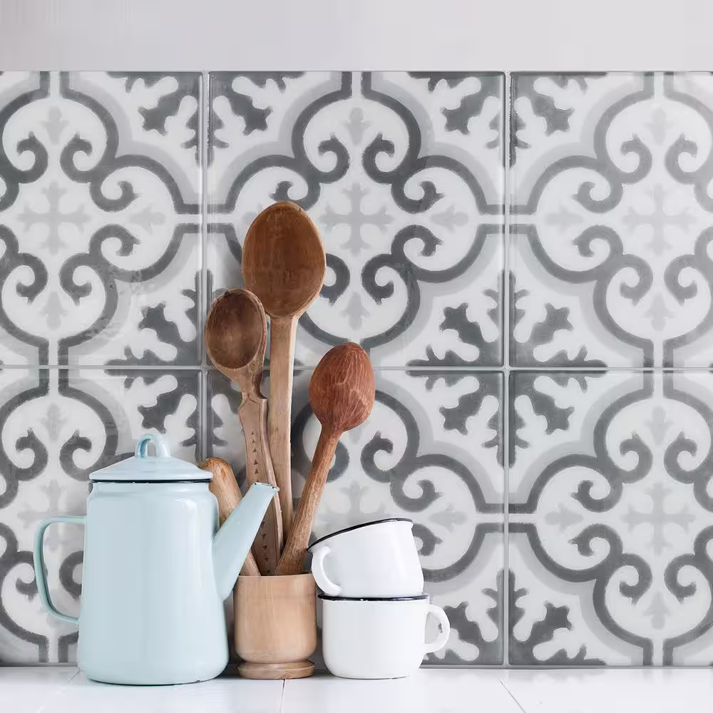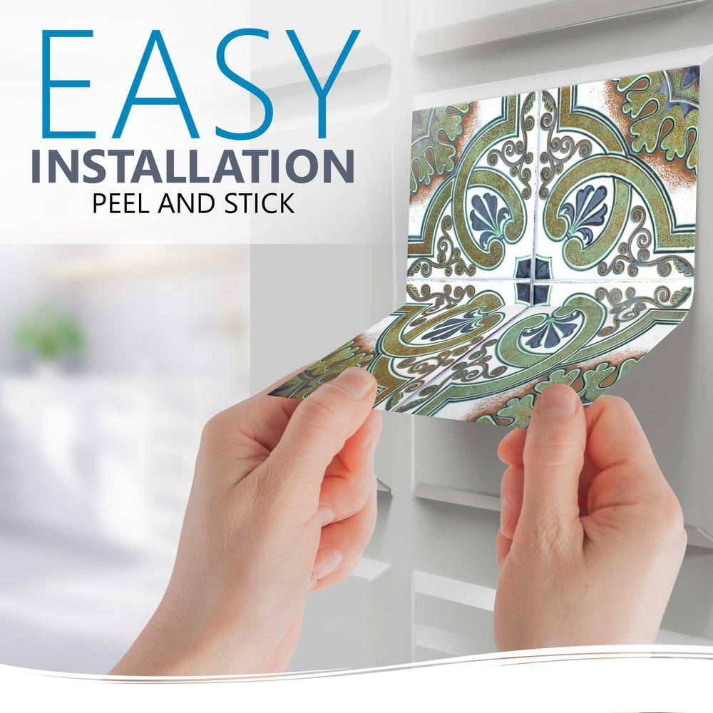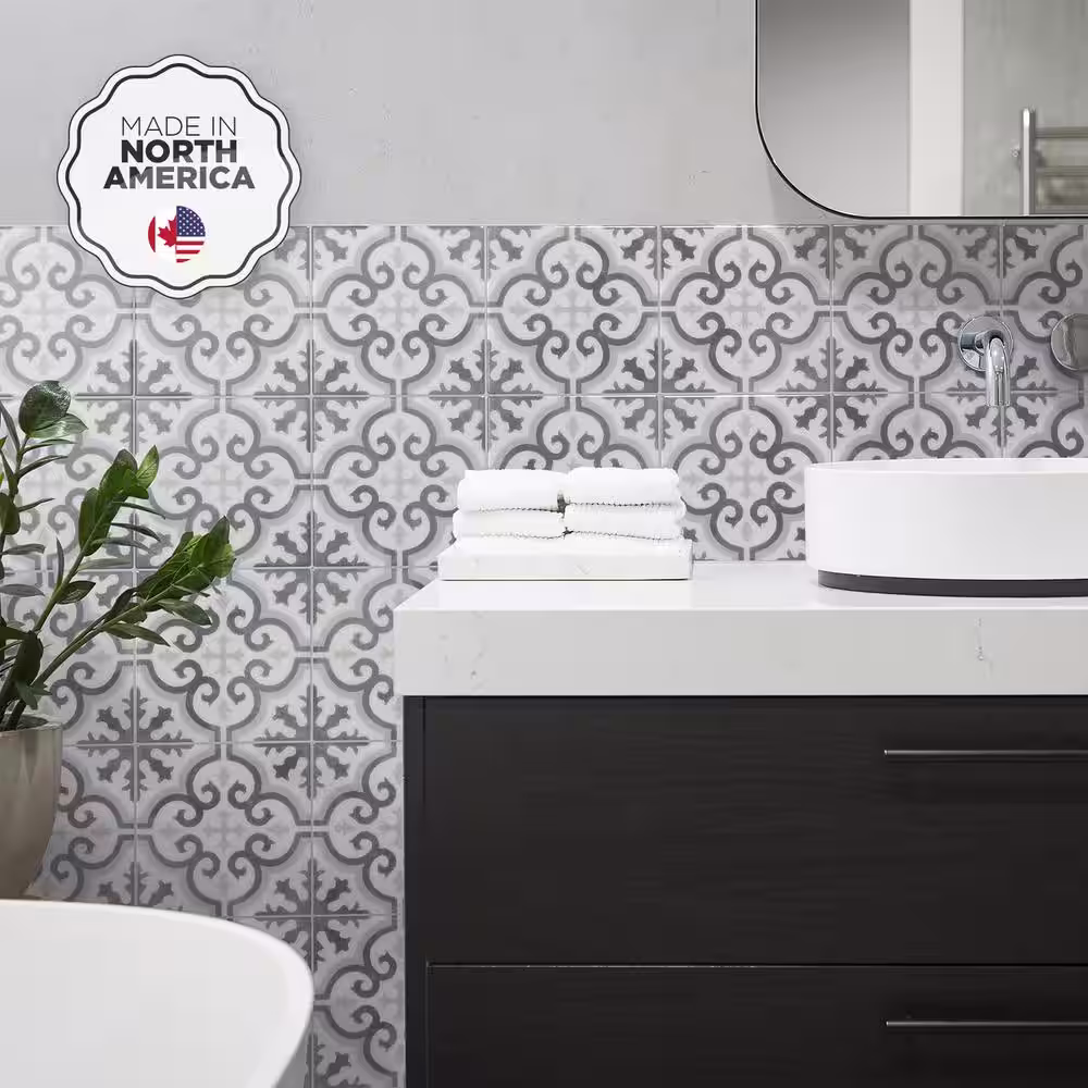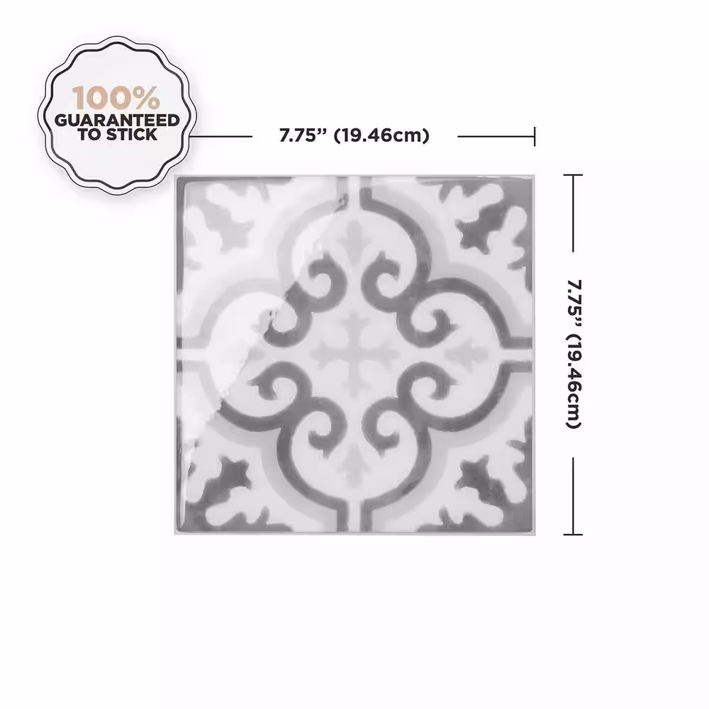 smart tiles Vintage Bilbao Black/White 9 in. x 9 in. Vinyl Peel and Stick Tile (2.20 sq. ft./4-pack)
