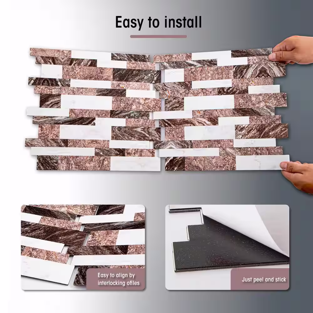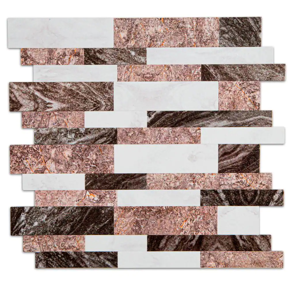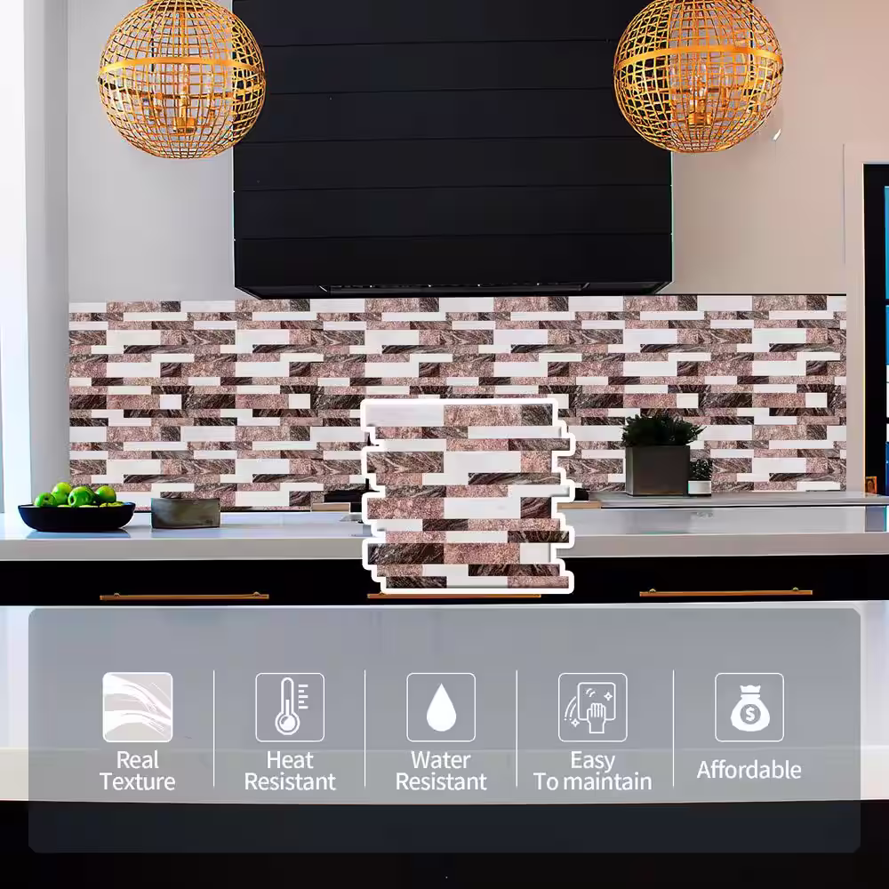 None Black and White and Brown 12 in. x 12 in. PVC Peel and Stick Tile Backsplash (5 sq. ft./5 Sheets)