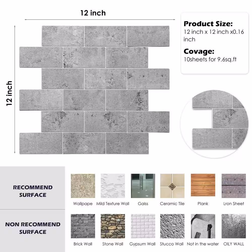 None Peel and Stick Wall Tiles for Kitchen Backsplash Bathroom and Living Room