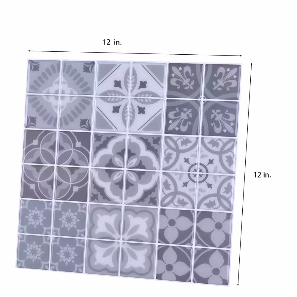 Art3d Mexican Mosaic Gray 12 in. x 12 in. Vinyl Peel and Stick Tile Backsplash (10 sq.ft./Case)