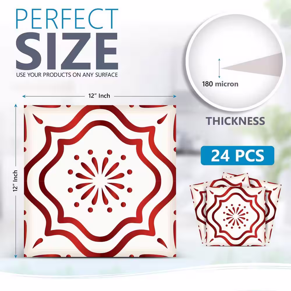 None 12 in. x 12 in. Red and Off-White B509 Vinyl Peel and Stick Tile (24 Tiles, 24 sq. ft./pack)