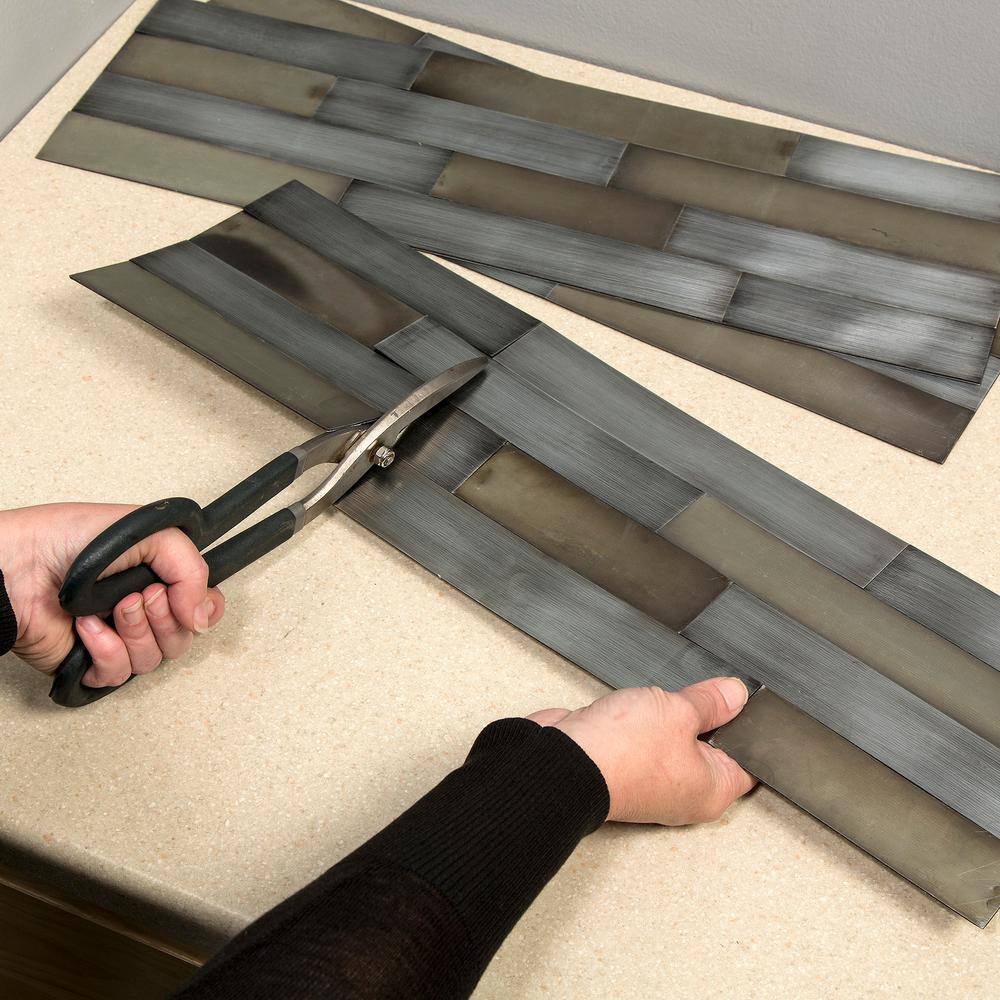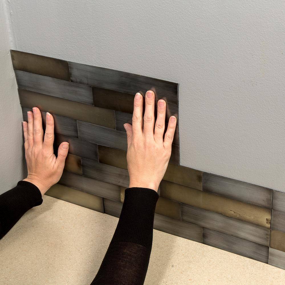Aspect Distressed Peel and Stick 23.6 in. x 5.9 in. Metal Backsplash in Gilded Silver