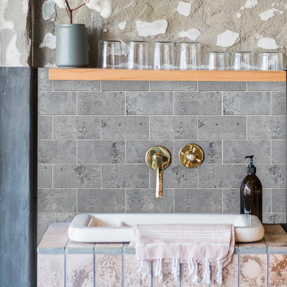 None Subway Collection Concrete Grey 12 in. x 12 in. PVC Peel and Stick Tile (5 sq. ft./5-Sheets)