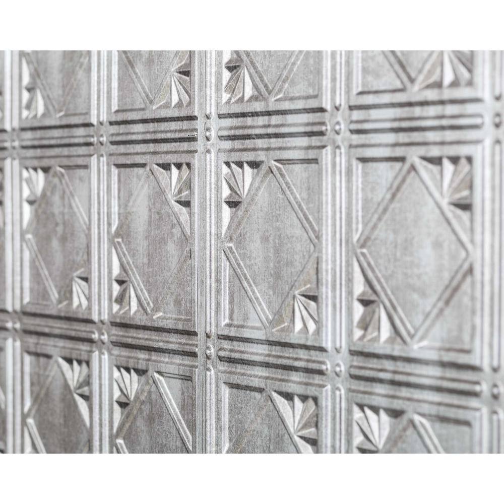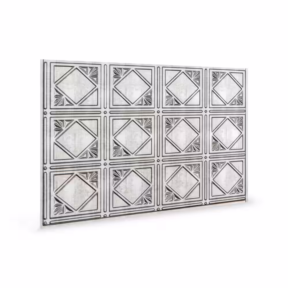 INNOVERA DECOR BY PALRAM 18.5'' x 24.3'' Lamina Decorative 3D PVC Backsplash Panels in Crosshatch Silver 9-Pieces