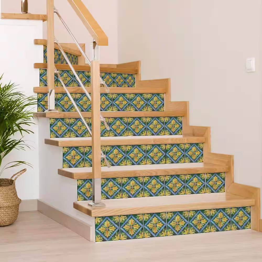 None Green, Yellow, and Blue R48 8 in. x 8 in. Vinyl Peel and Stick Tile (24-Tiles, 10.67 sq. ft. / pack)