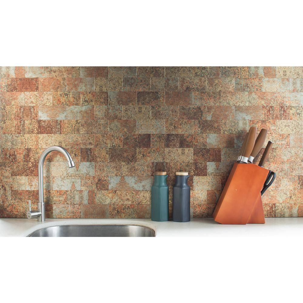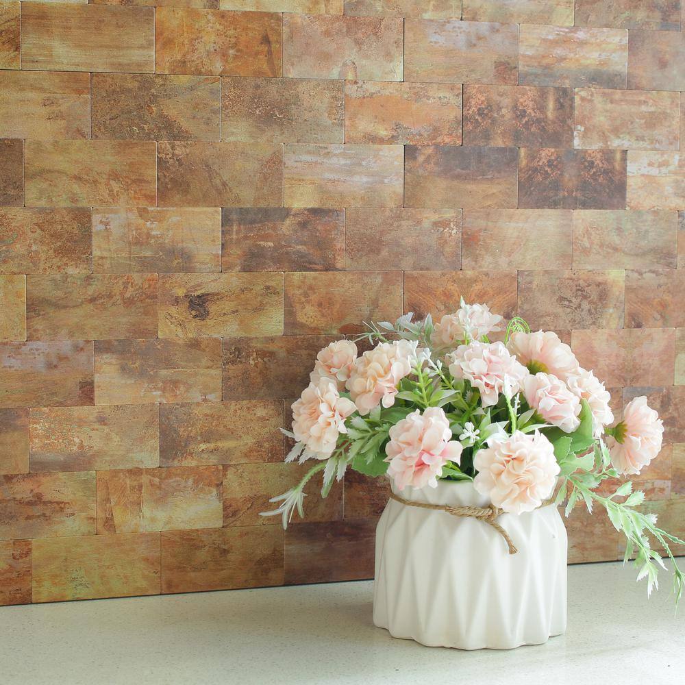 None Retro Copper Rectangl 12 in. x 12 in. PVC Peel and Stick Tile (5 sq. ft./5 Sheets)