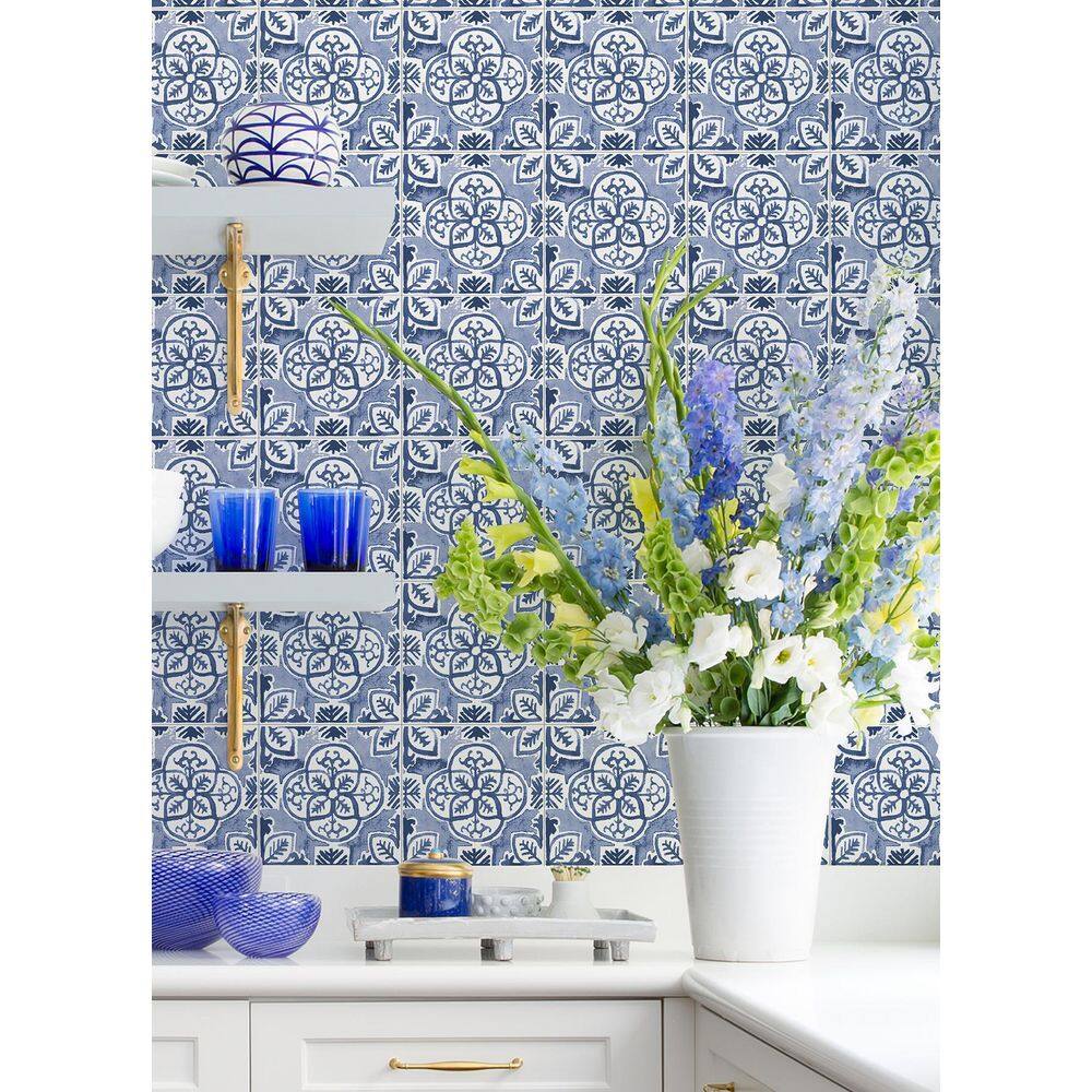 WallPOPs Caeli Blue Semi-Gloss 6.2 in. W x 6.2 in. L Vinyl Peel and Stick Tile (3.2 sq. ft./pack)
