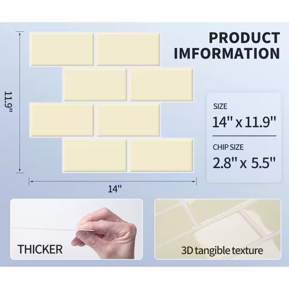 Art3d Yellow 14 in. x 12 in. Vinyl Peel and Stick Tile for Kitchen Backsplash, Brthroom (11.5 sq. ft./Box)