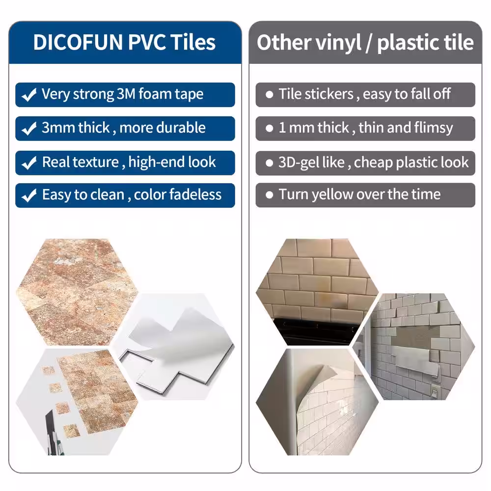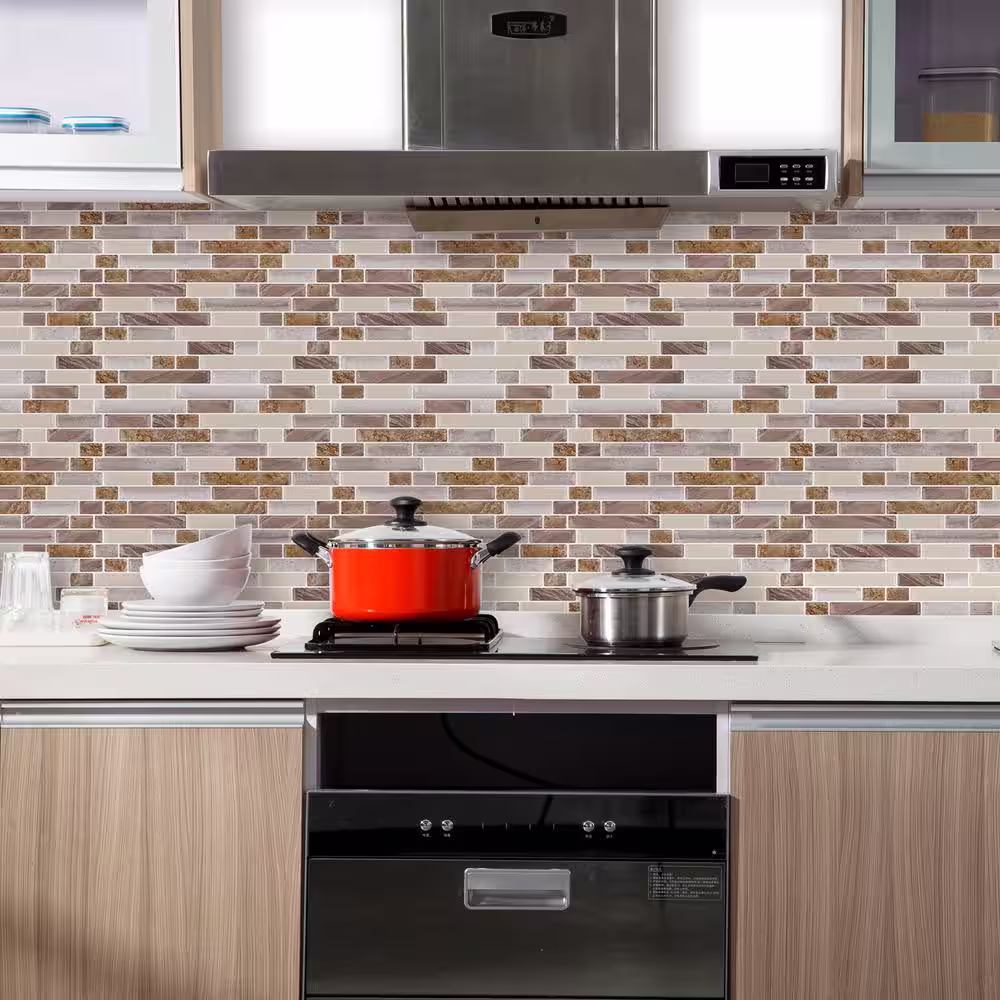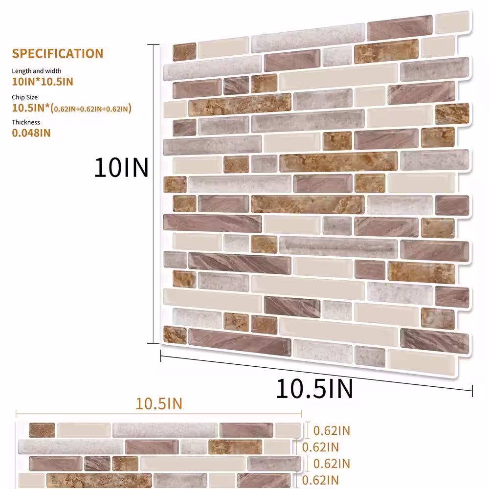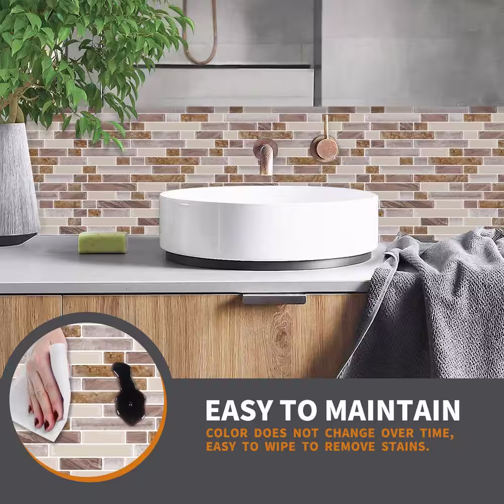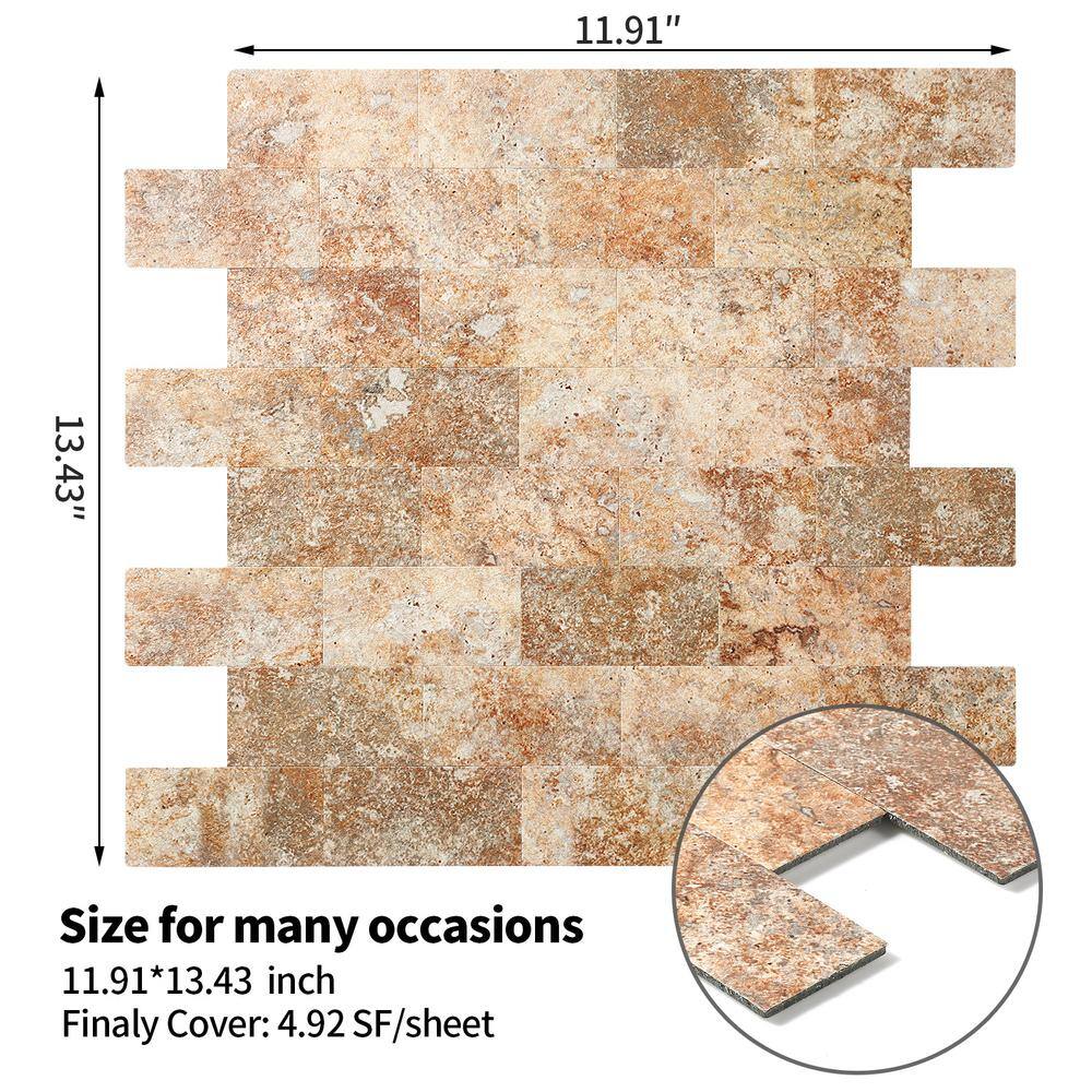 Yipscazo Light Brown 12 in. x 12 in. PVC Peel and Stick Tile Backsplash (5 sq. ft./5 Sheets)